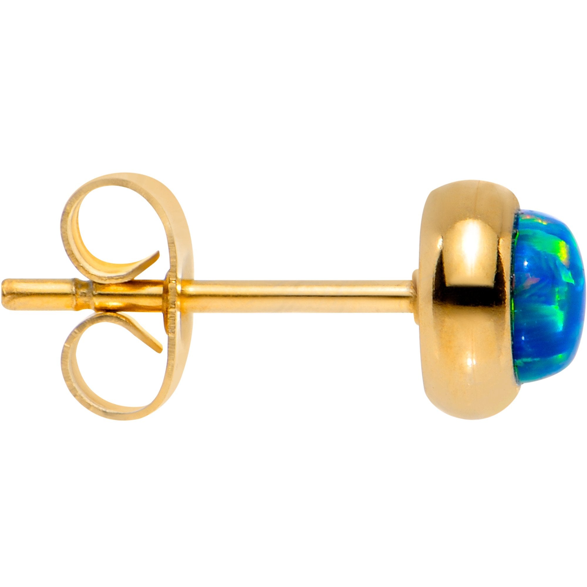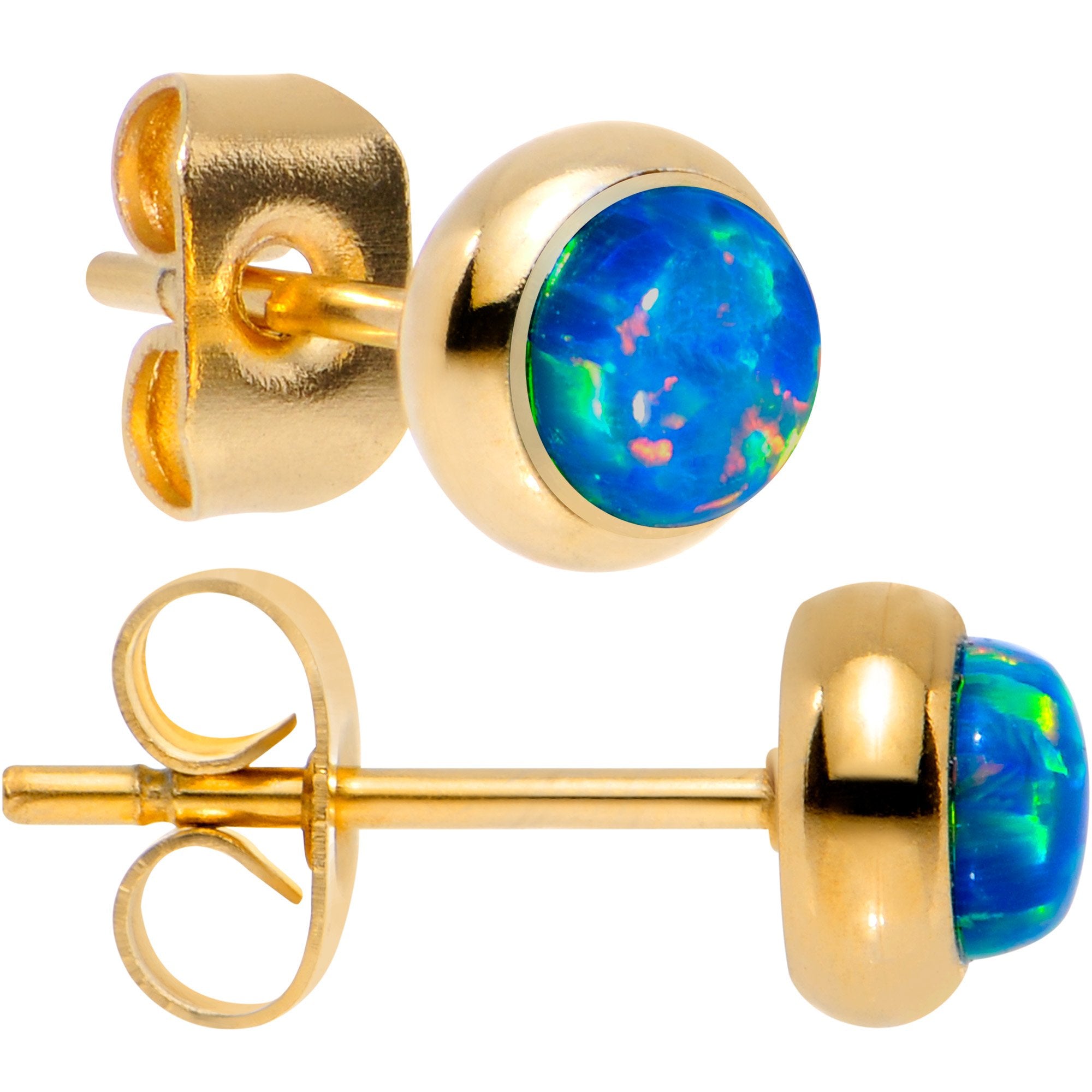 6mm Diameter, Gold IP over 316L Surgical Grade Stainless Steel Posts with Friction Backs, Bezel Set, Synthetic Opal