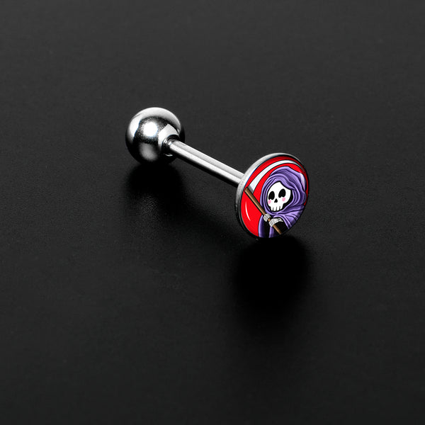 Hypoallergenic jewelry for sensitive skin.Grim Reaper Barbell Tongue Ring