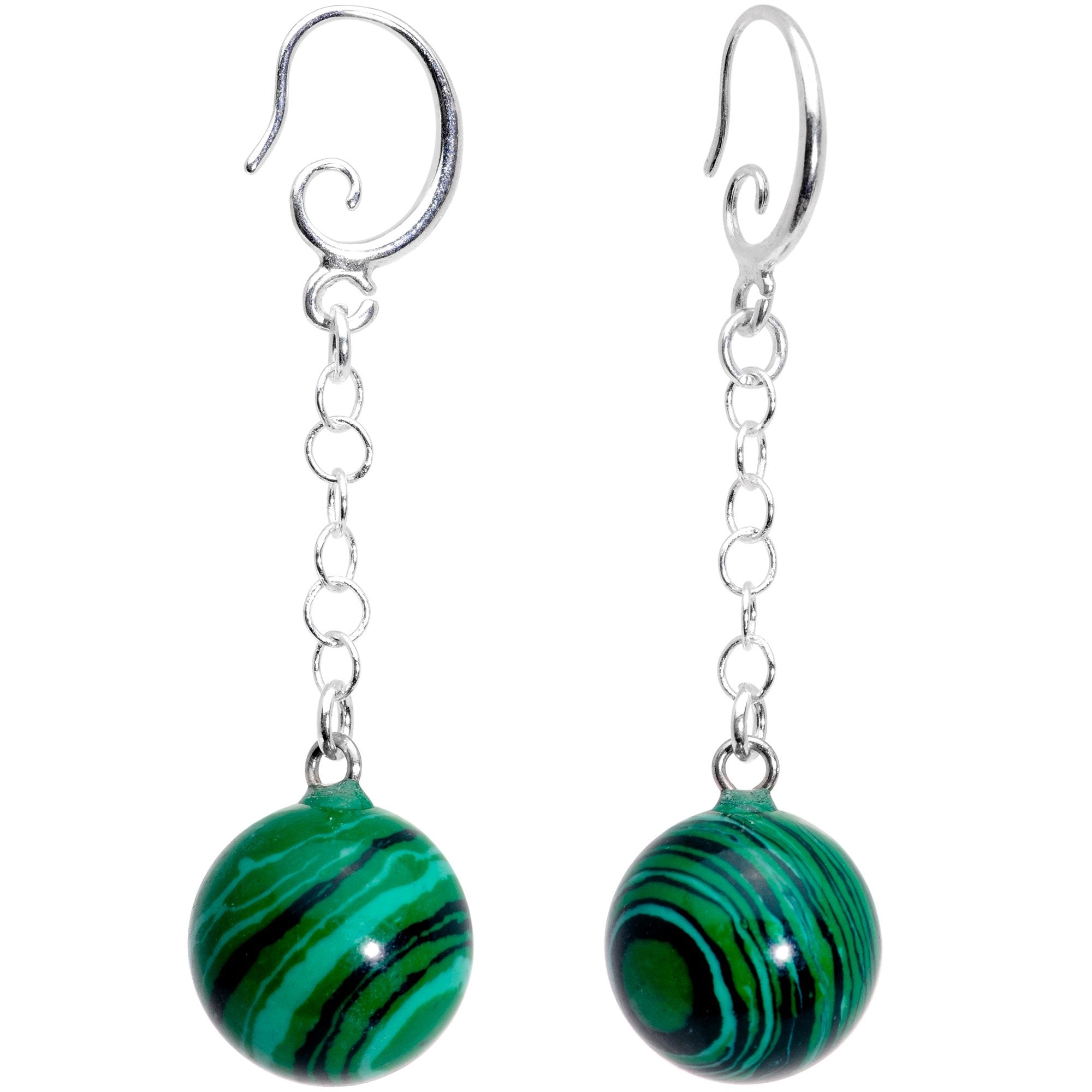You'll look sweet as candy with these fun jawbreaker fishhook earrings. A pair of perfectly round jawbreaker candy-inspired green swirl malachite orbs are the focus of these awesome earrings. The green stone orbs dangle from a pair of silver-plated fishhook earwire backings. Handmade in the USA!
