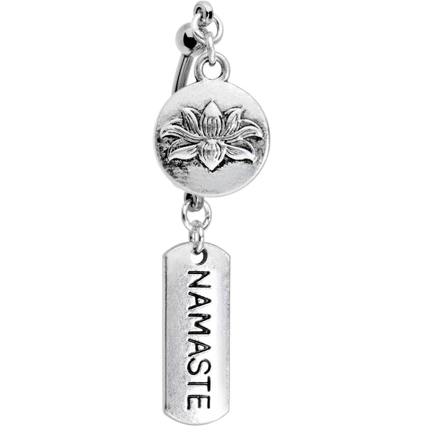Handcrafted Namaste Lotus Flower Double Mount Dangle Belly Ring