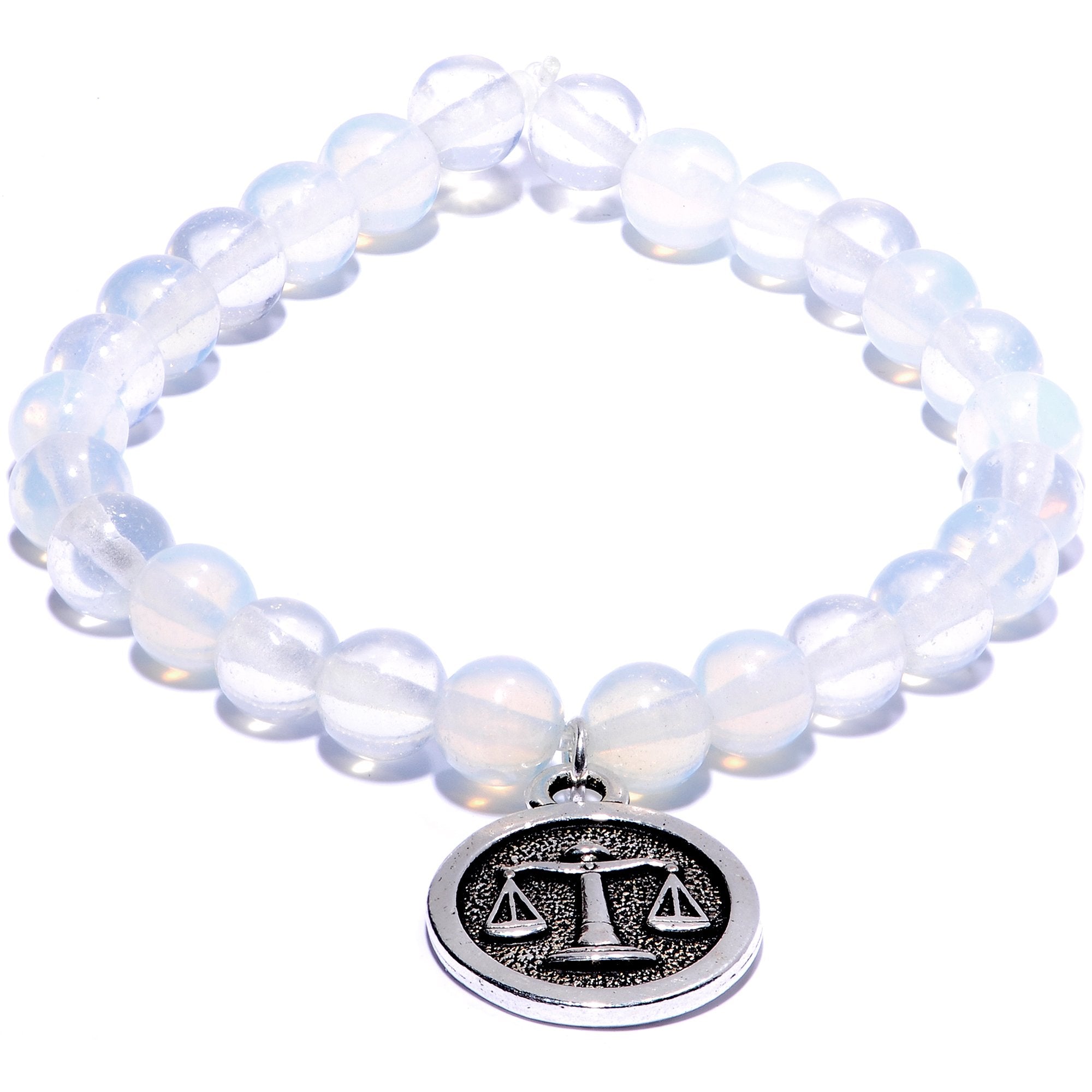 If anyone appreciates the balance in these zodiac bracelets, it will certainly be Libra! They're 6" in diameter and made with stretch nylon over rubber cord. You get one made with natural lavastone, so striking with its matte black coloration and naturally variegated appearance. You also get one made with opalite, pale and slightly iridescent, which also has a Libra pendant that features a set of scales on one side and Libra's sign and symbol on the other. Together the fashion bracelets make for one beautifully balanced appearance! And they're handmade in the USA!