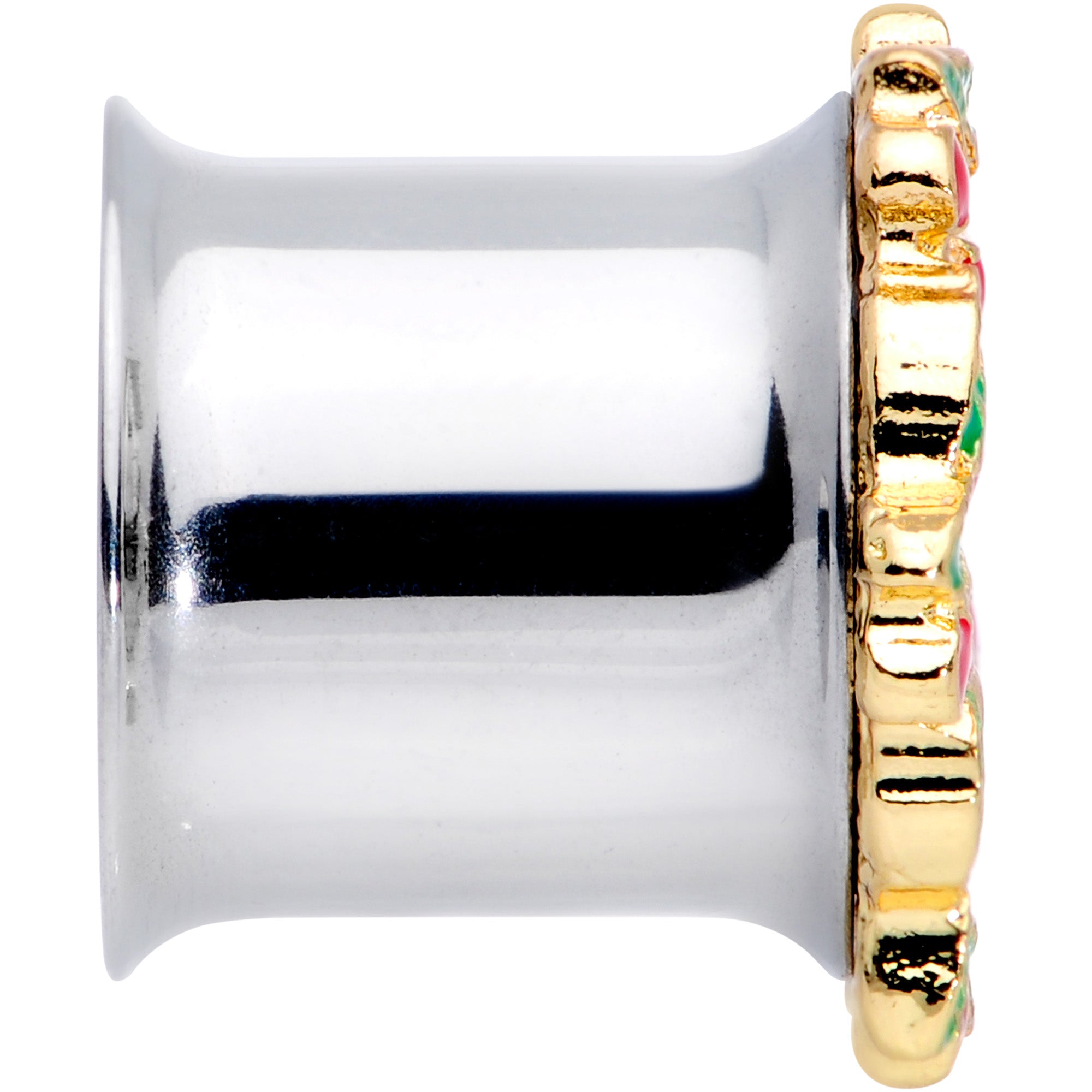 If you want to show off your love for the happiest season then you will love these Christmas wreath plug earrings. Made with durable 316L surgical grade stainless steel, these ear gauges feature gold tone holiday wreath fronts with red and green detail that will give you and everyone around you a serious case of holiday spirit. These tunnel plug earrings are sold as a set of two! NOTE: Prices of plugs may vary based on plug ear gauge size selected from drop down.
