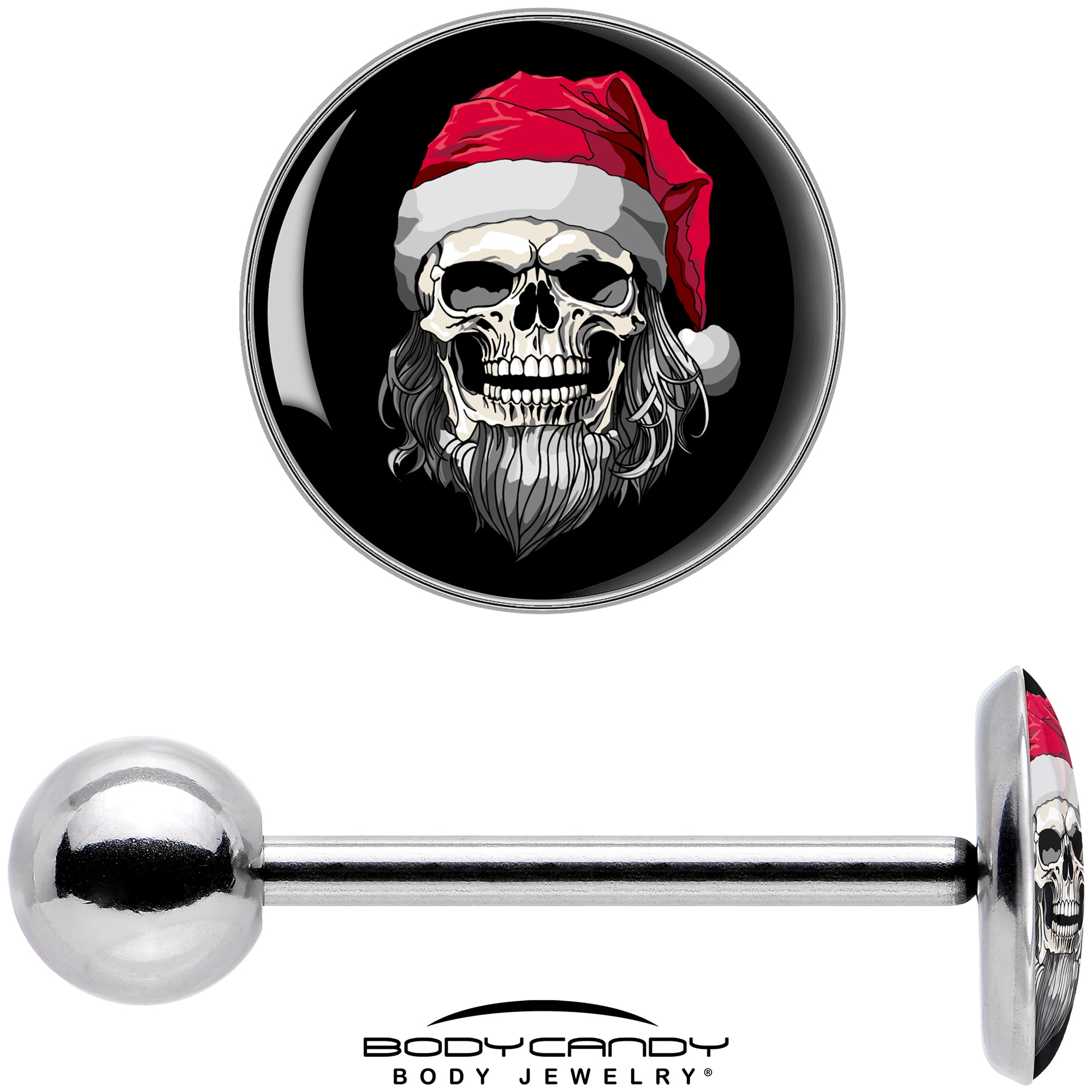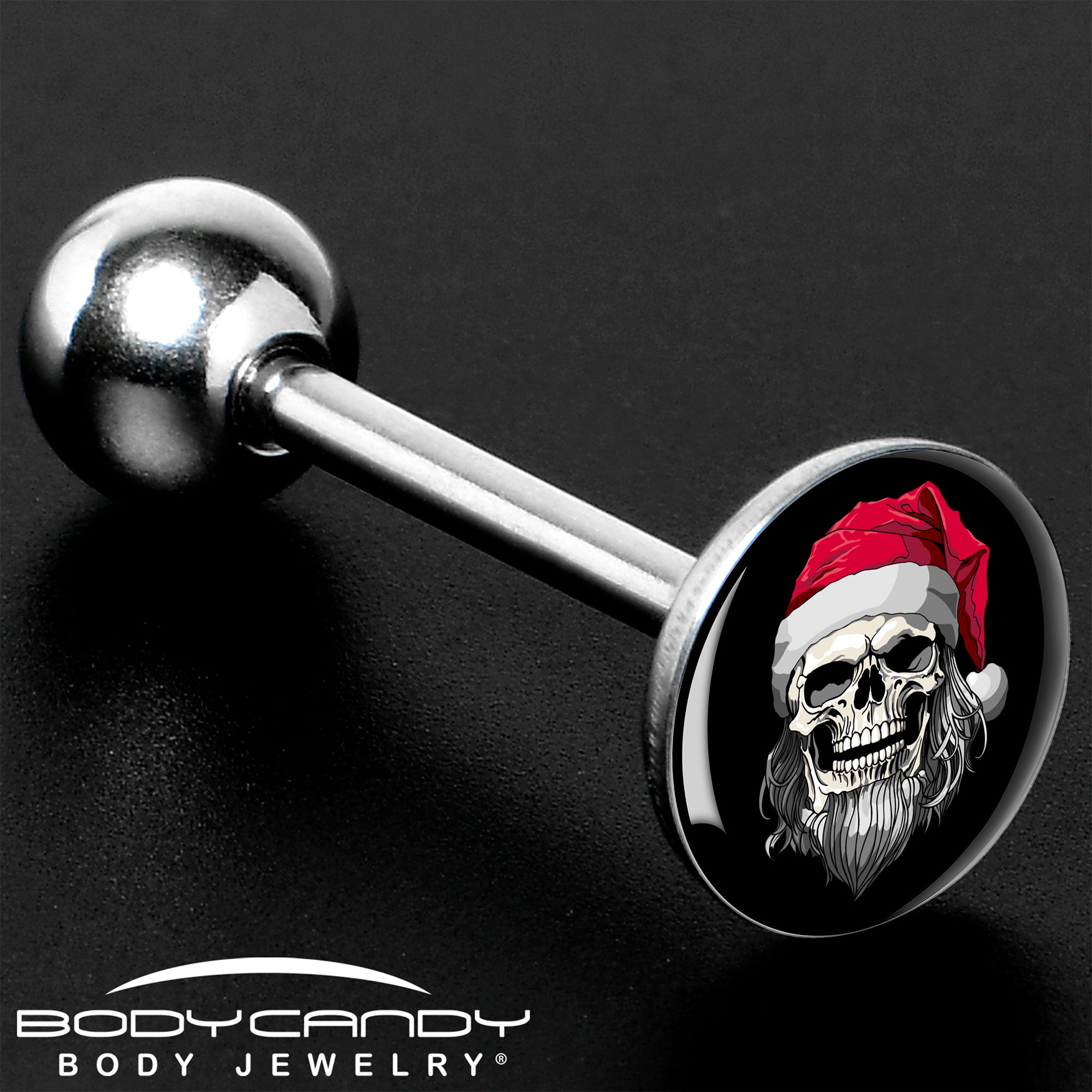 Hypoallergenic jewelry for sensitive skin.Holiday Skeleton Santa Claus Barbell Tongue Ring