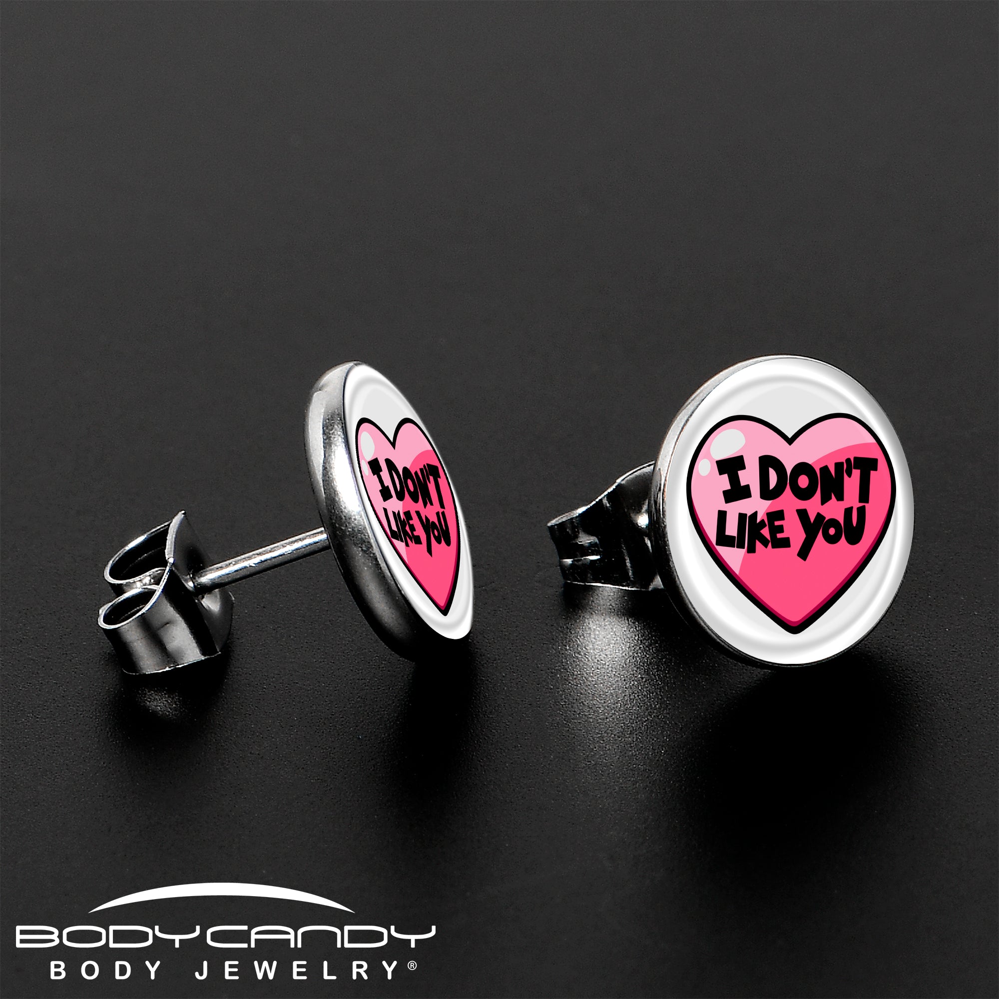 I Don't Like You Valentine Heart Stud Earrings