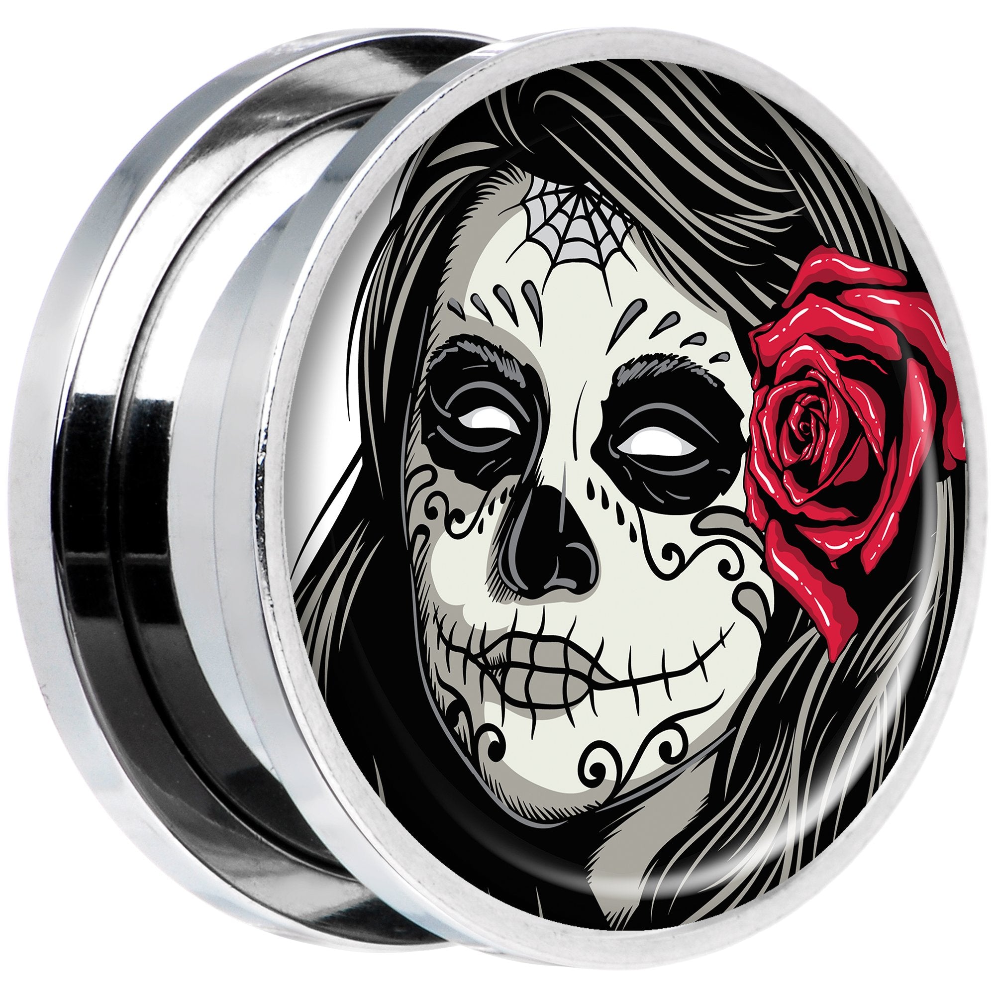 Katrina Sugar Skull with Rose Flower Steel Screw Fit Plug Set 18mm