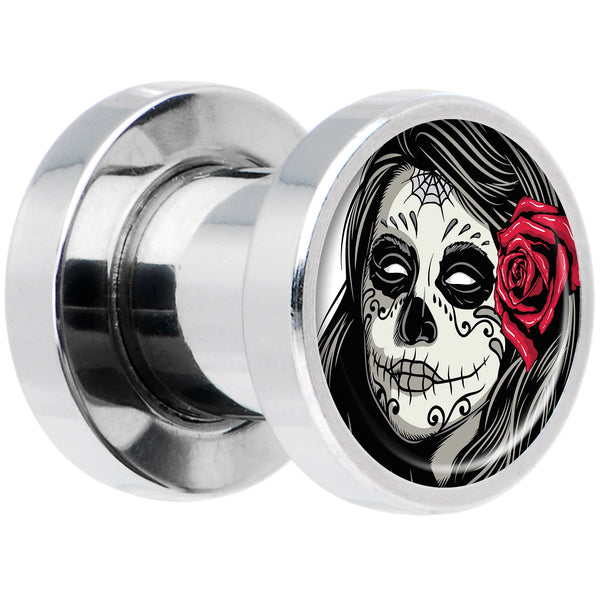 Katrina Sugar Skull with Rose Steel Screw Fit Plug Set 2 Gauge