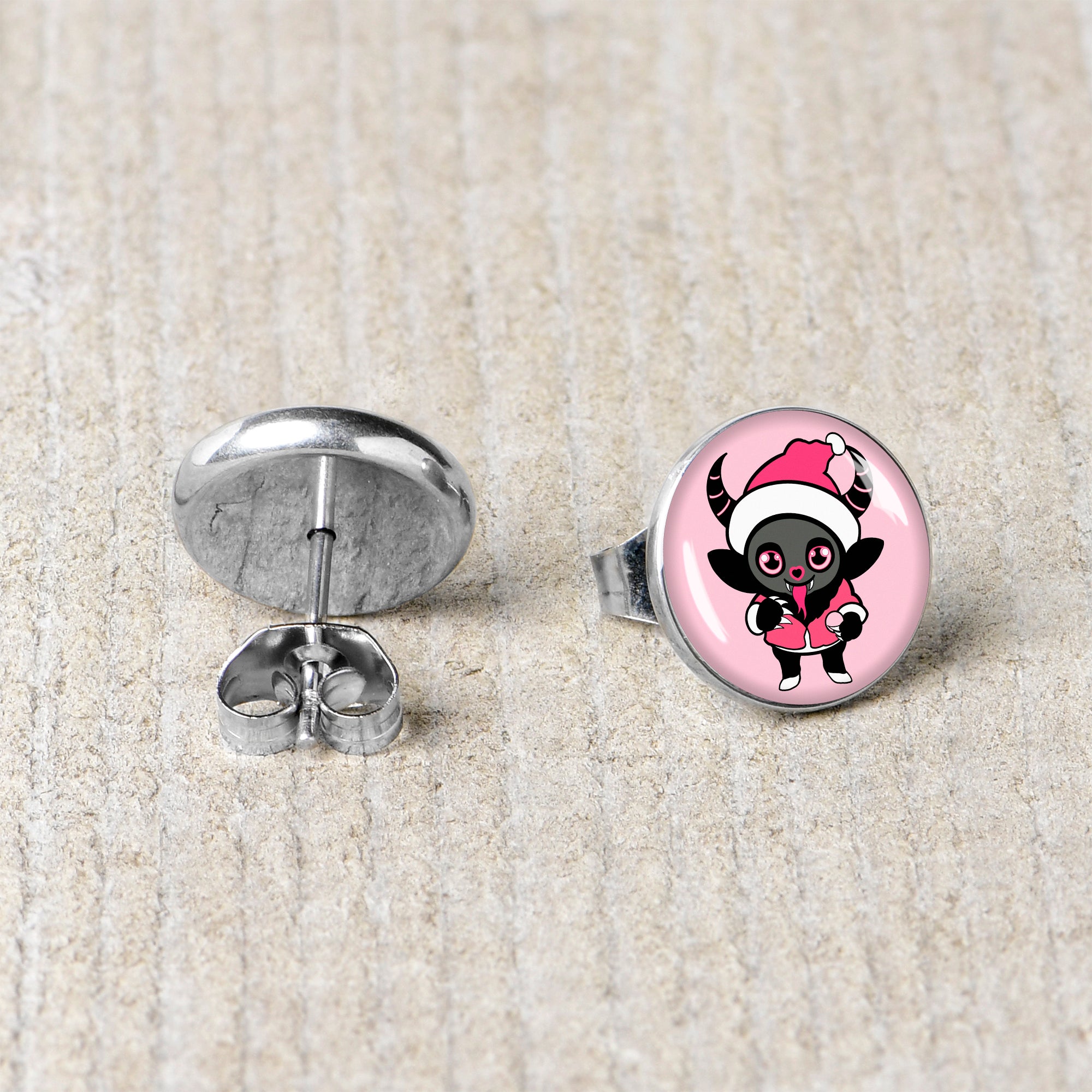 Hypoallergenic jewelry for sensitive skin.Krampus Cutie Christmas Holiday Stud Earrings