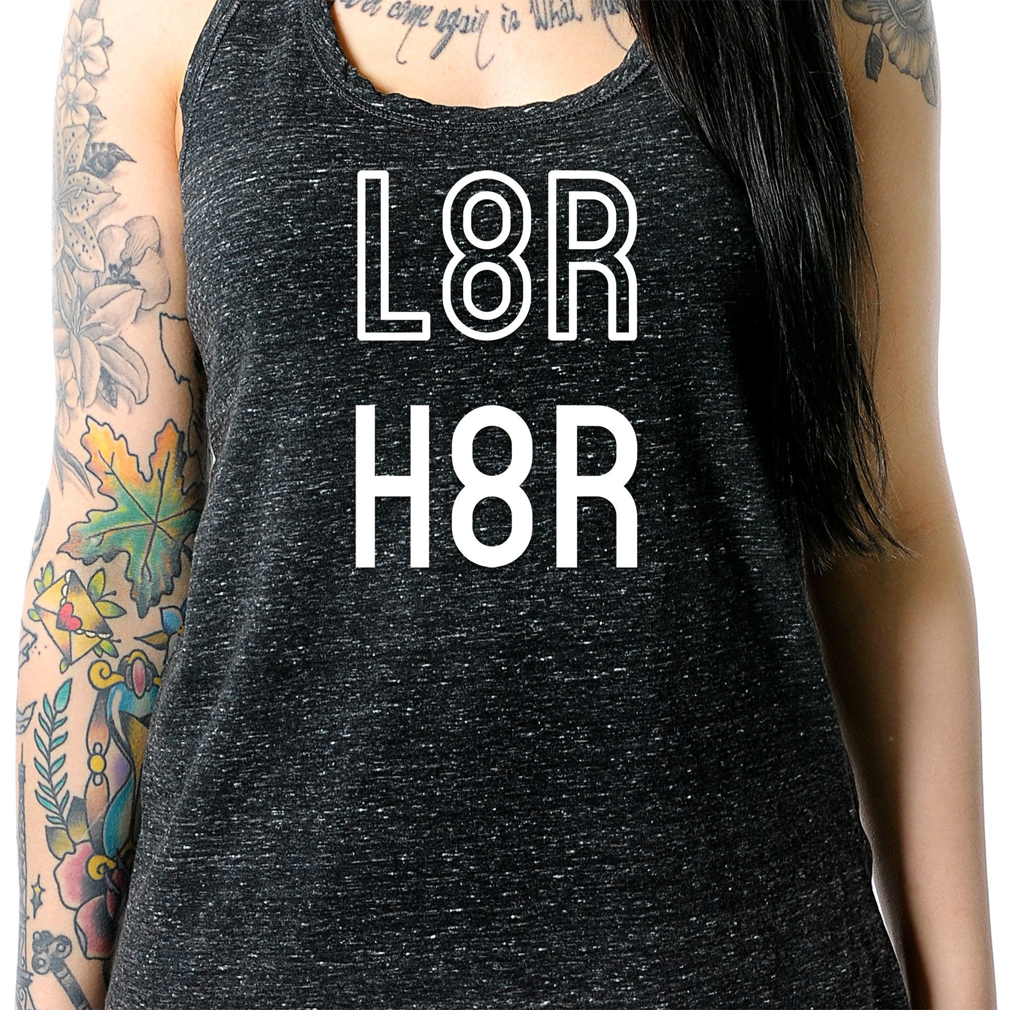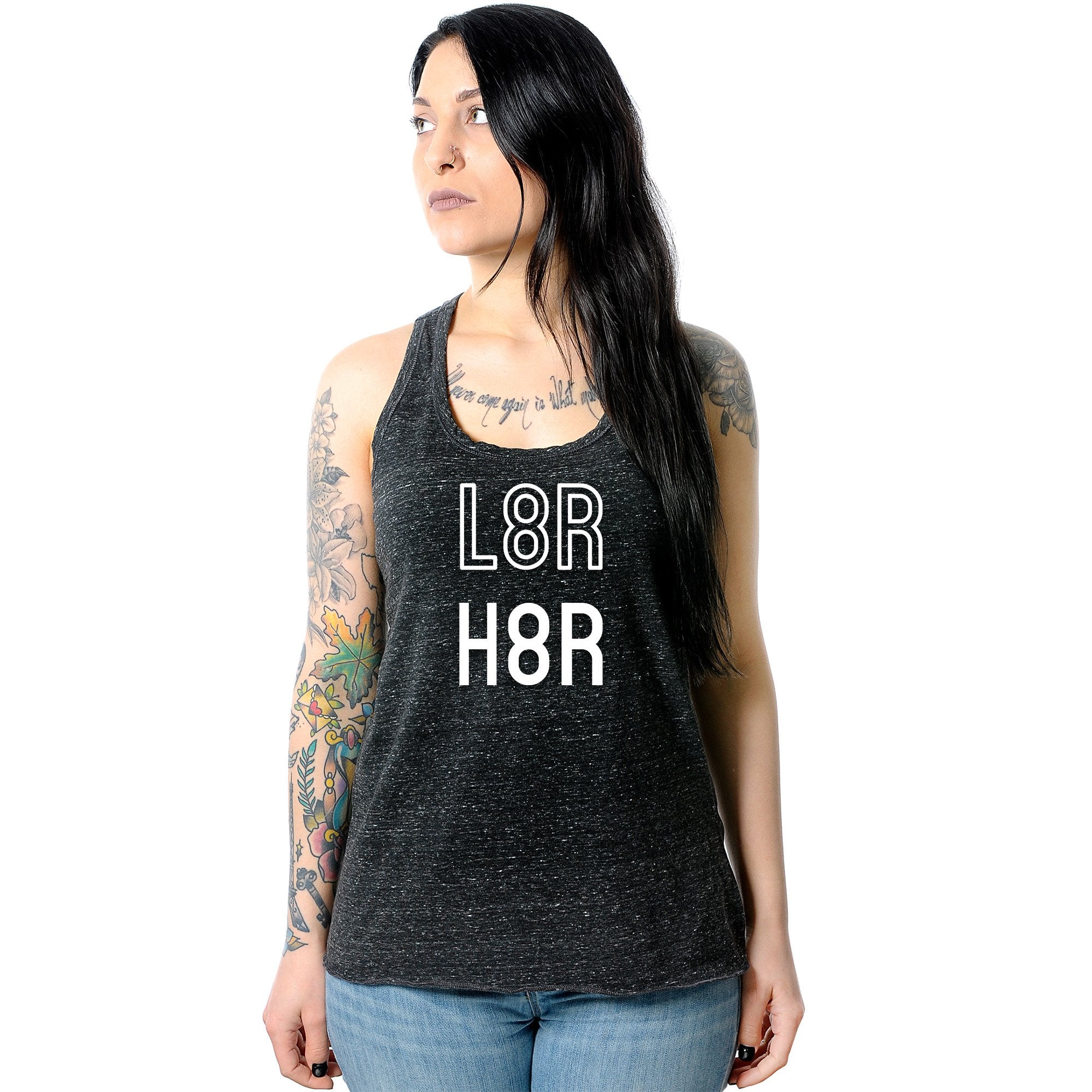 L8R H8R Black Gray Cosmic Twist Back Tank Top