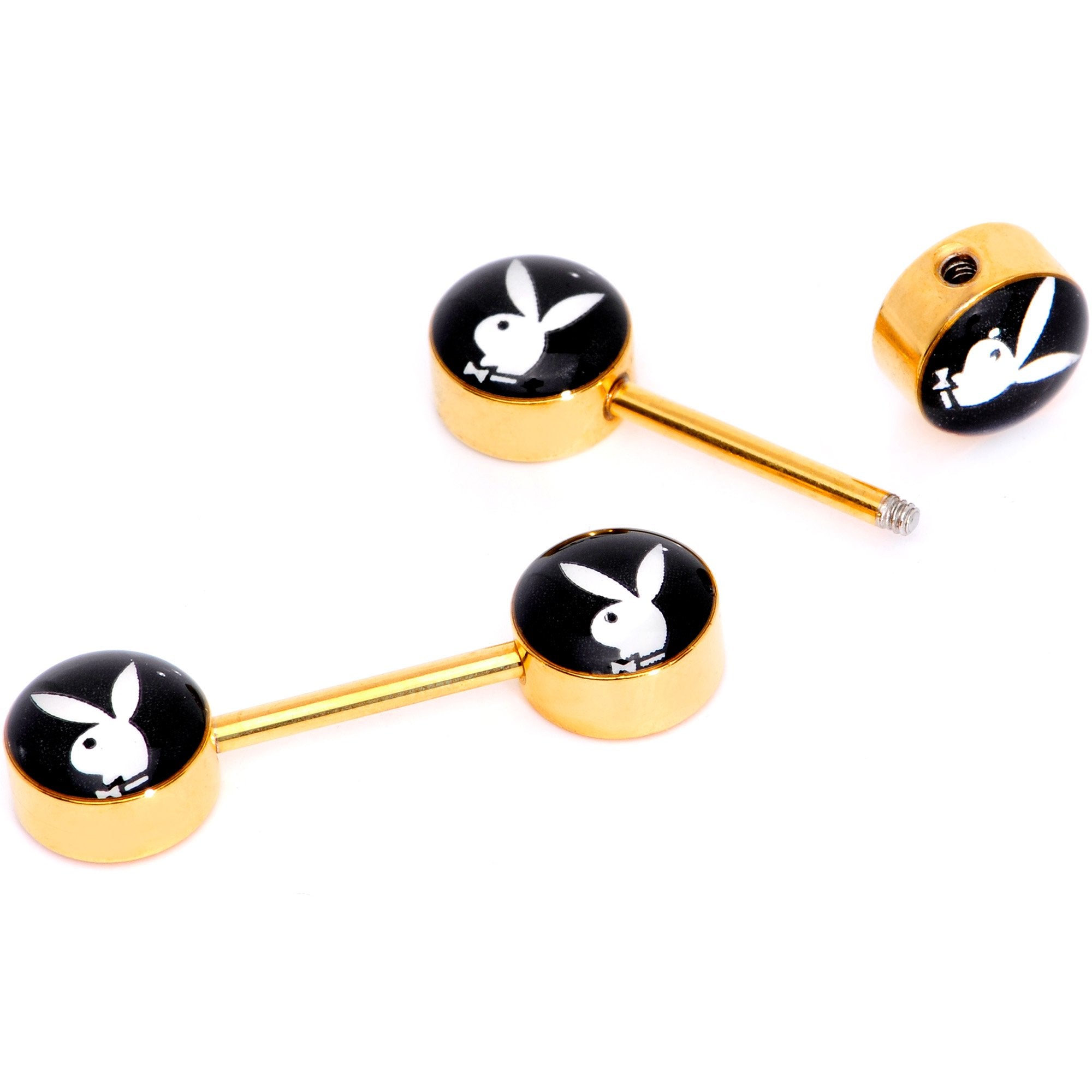 Licensed Playboy Bunny Gold Tone Barbell Nipple Ring Set