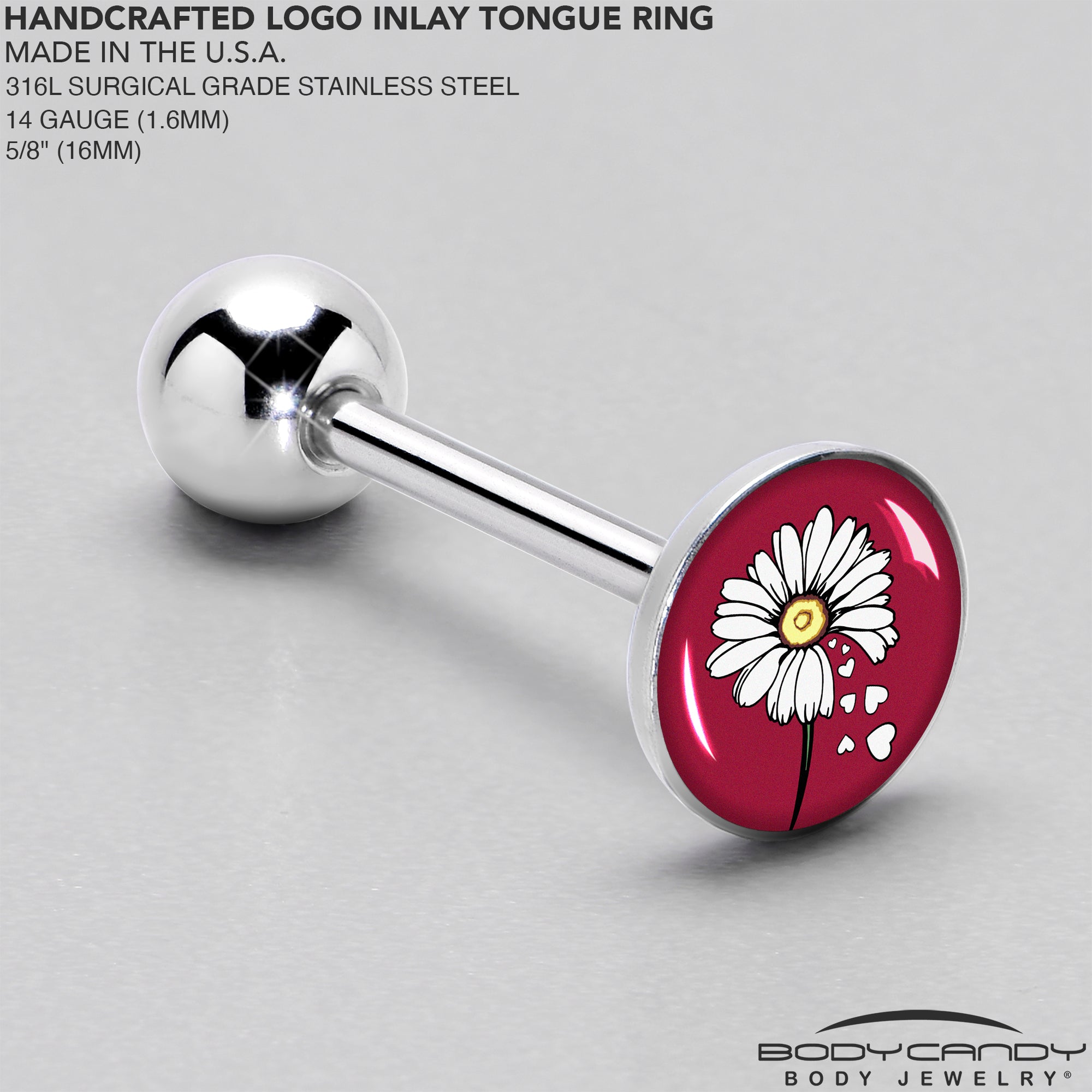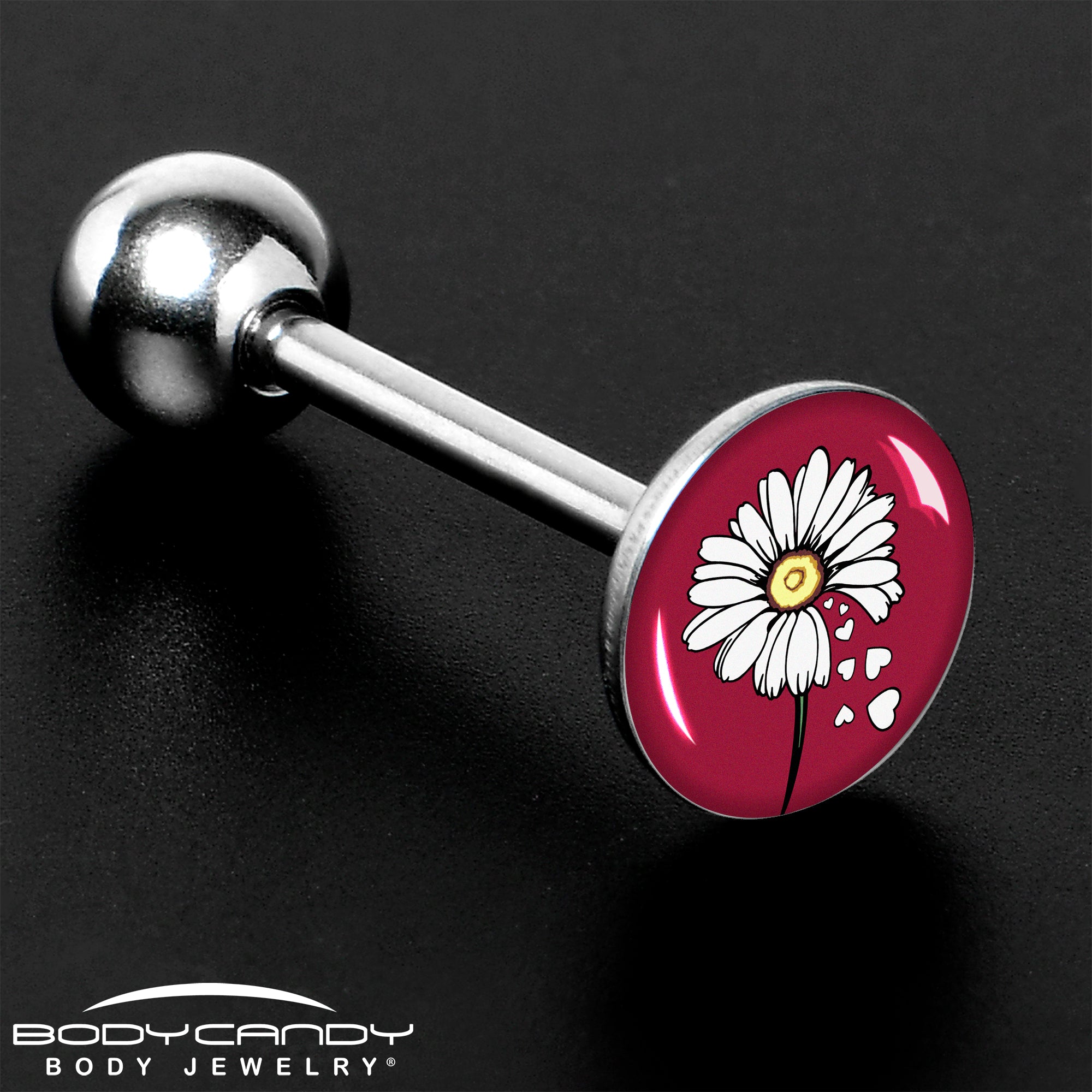 Hypoallergenic jewelry for sensitive skin.Love Me Not Flower Barbell Tongue Ring