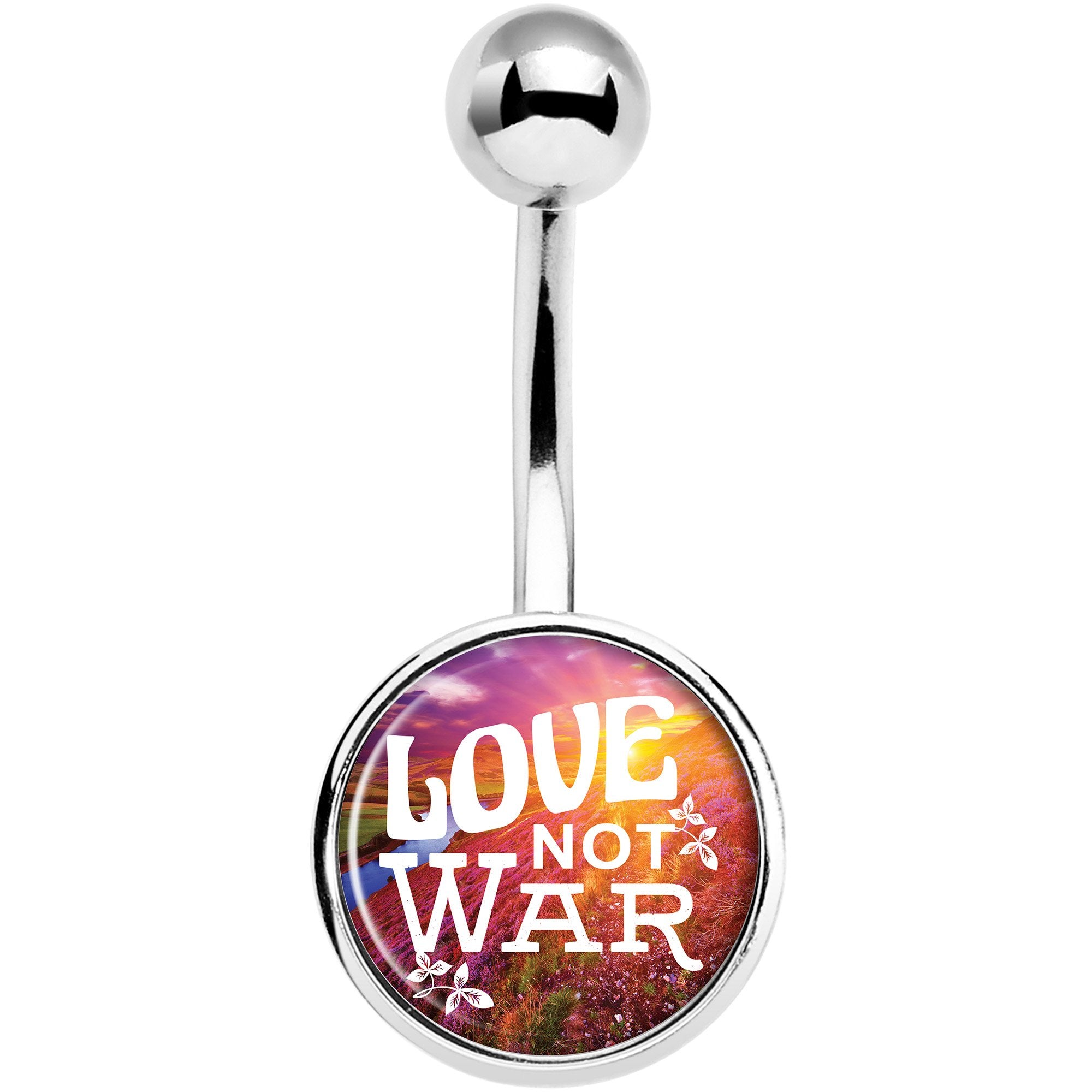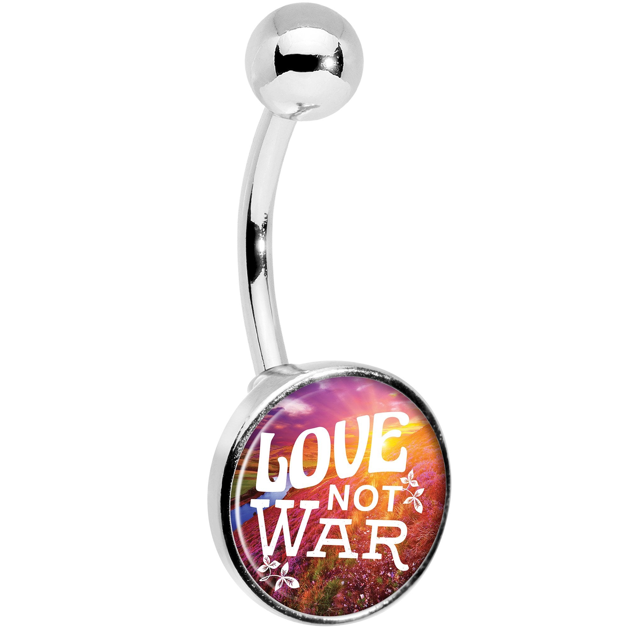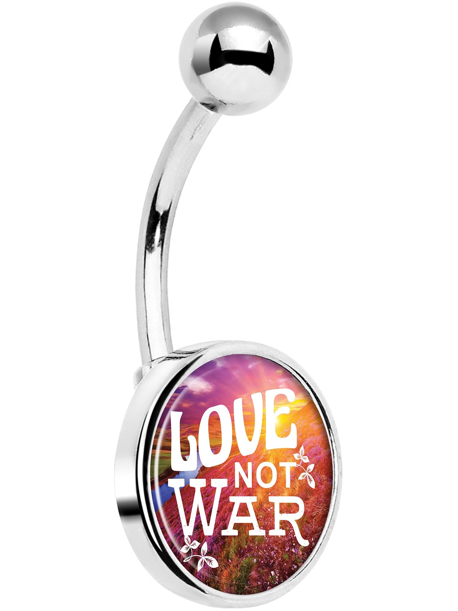 If you are all about love and not war then this navel jewelry is right for you! Made with a 7/16" durable 316L surgical grade stainless steel curved barbell, this belly button ring features a full color "Love Not War" logo inlay.