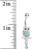 Lower Mount Paved Aqua Gem Owl Belly Ring
