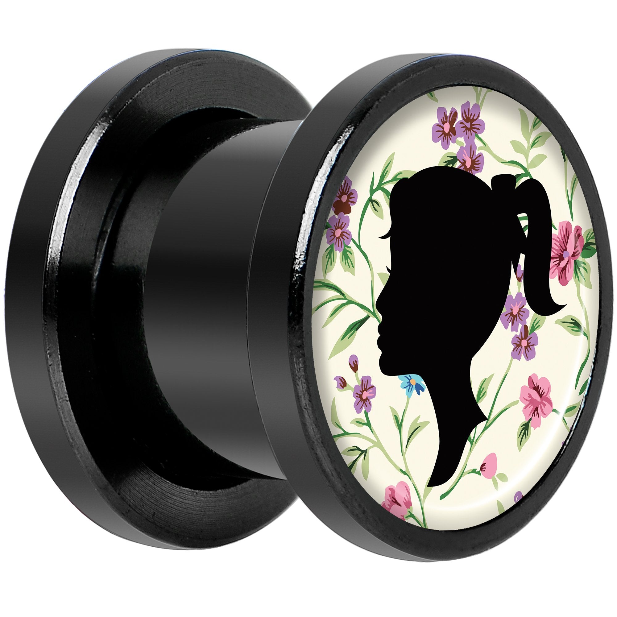 If you love floral prints and classic male and female silhouettes then this pair of double flare plugs is right for you! Made with black anodized over 316L surgical grade stainless steel, these 10mm ear gauges are made with a screw fit design for easier insertion and removal and are sold as a set of two for you.
