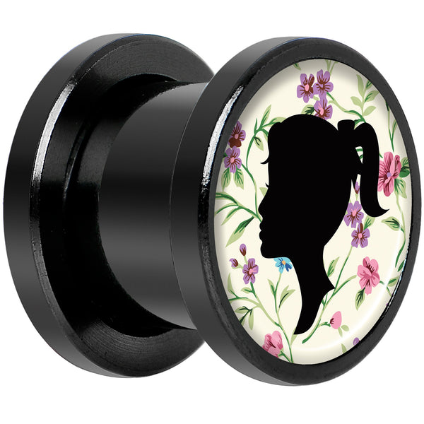 Man Woman Floral Silhouette Black Anodized Screw Fit Plug Set 00G