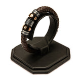 Mens Brown Braided Leather Rose Gold IP and Steel Beads Bracelet
