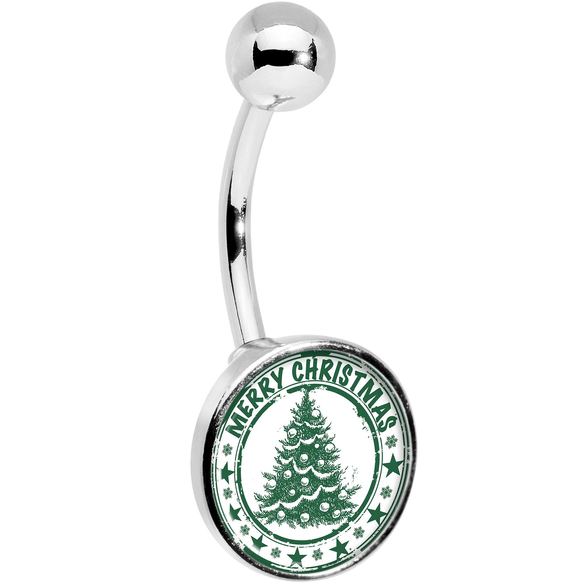 Hypoallergenic belly ring for sensitive skin,Merry Christmas Tree Belly Ring
