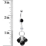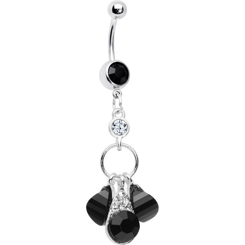 Silky black hanging teardrops and clear crystal accents make this chic hoop dangle belly button ring black tie ready. Curved barbell navel jewelry with black gem ball.