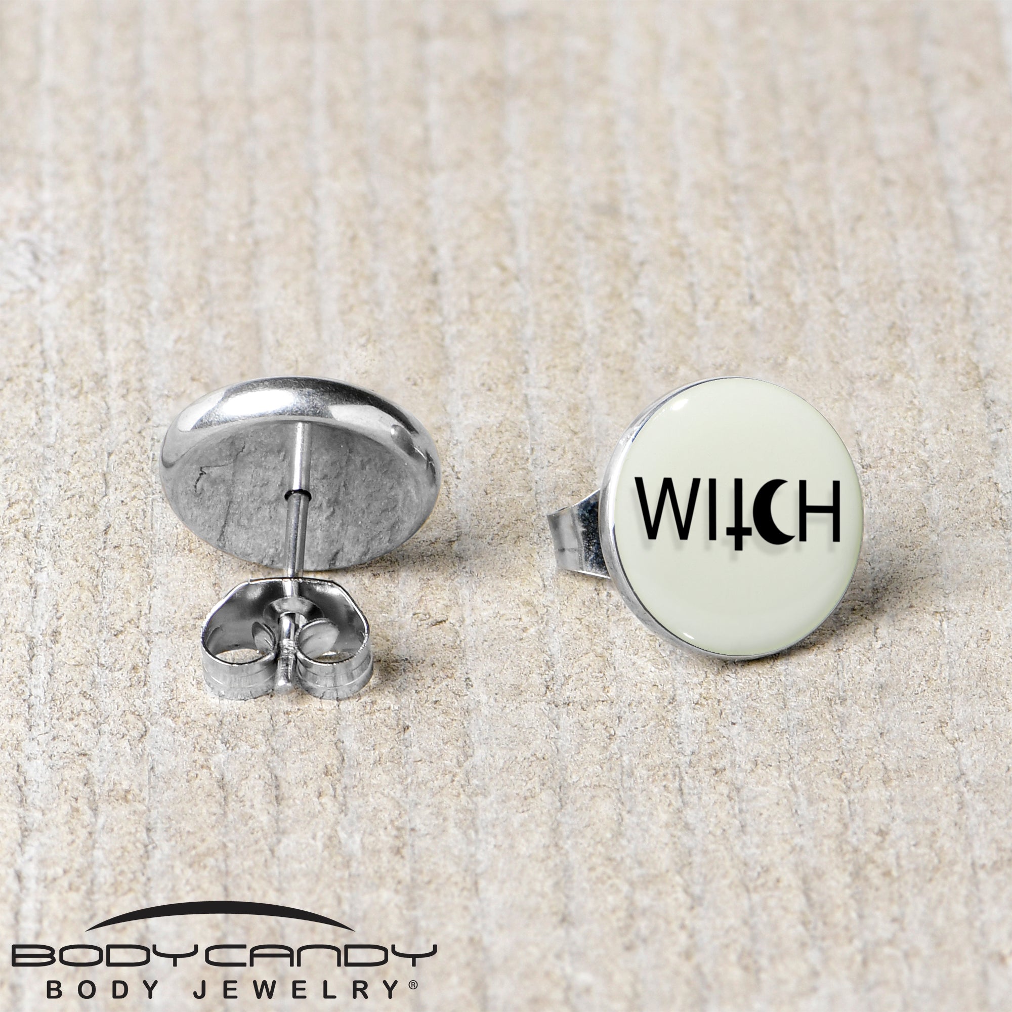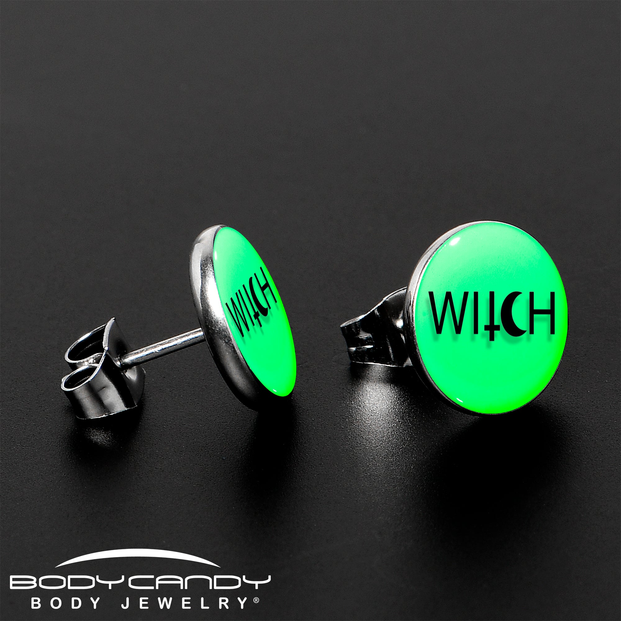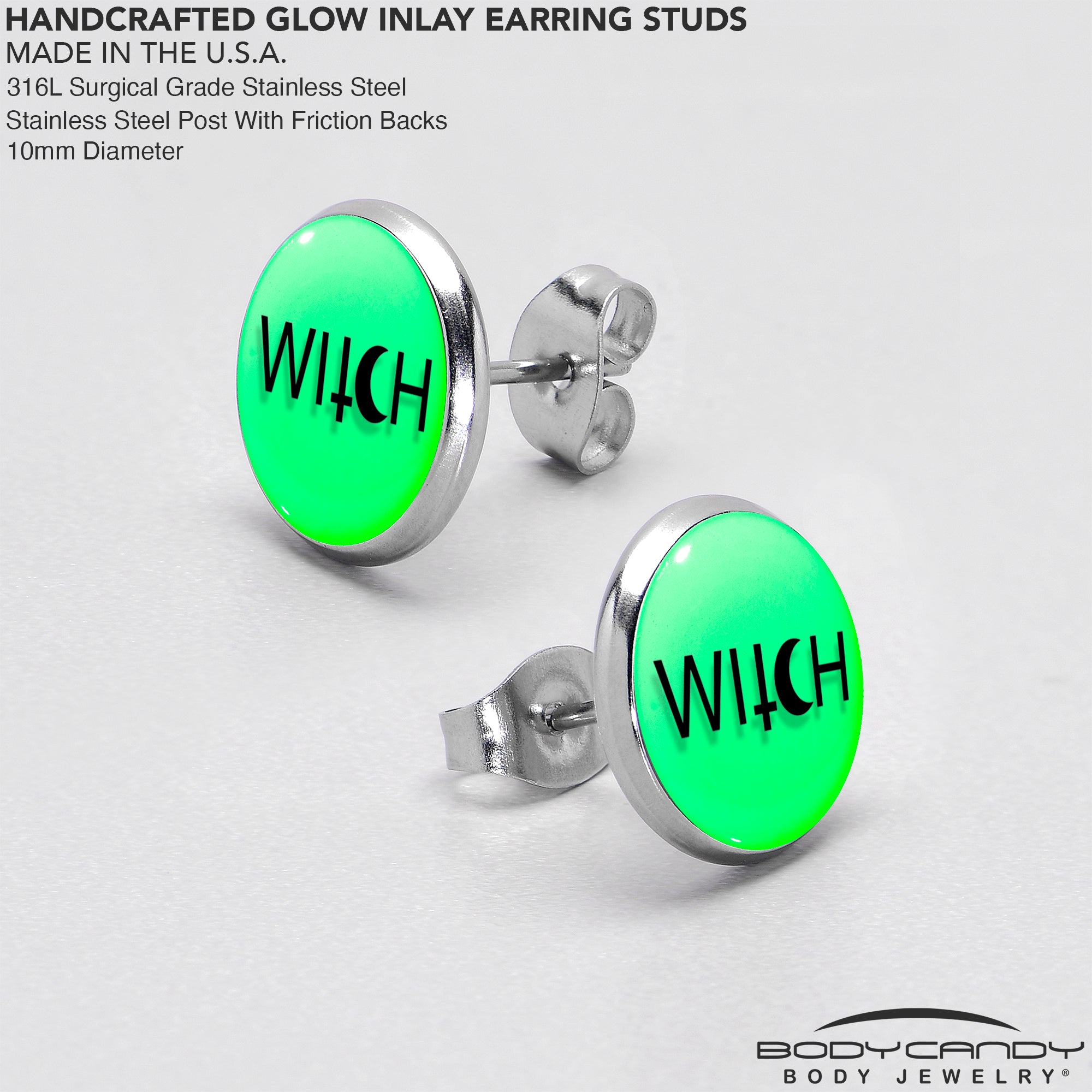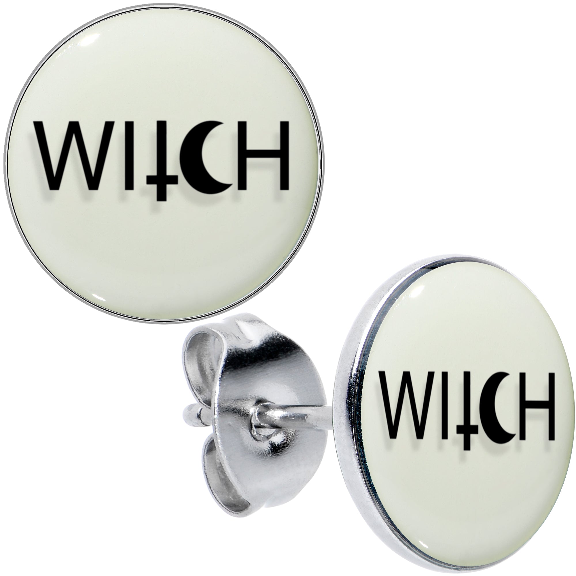 Hypoallergenic jewelry for sensitive skin.Mystical Witch Glow in the Dark Stud Earrings