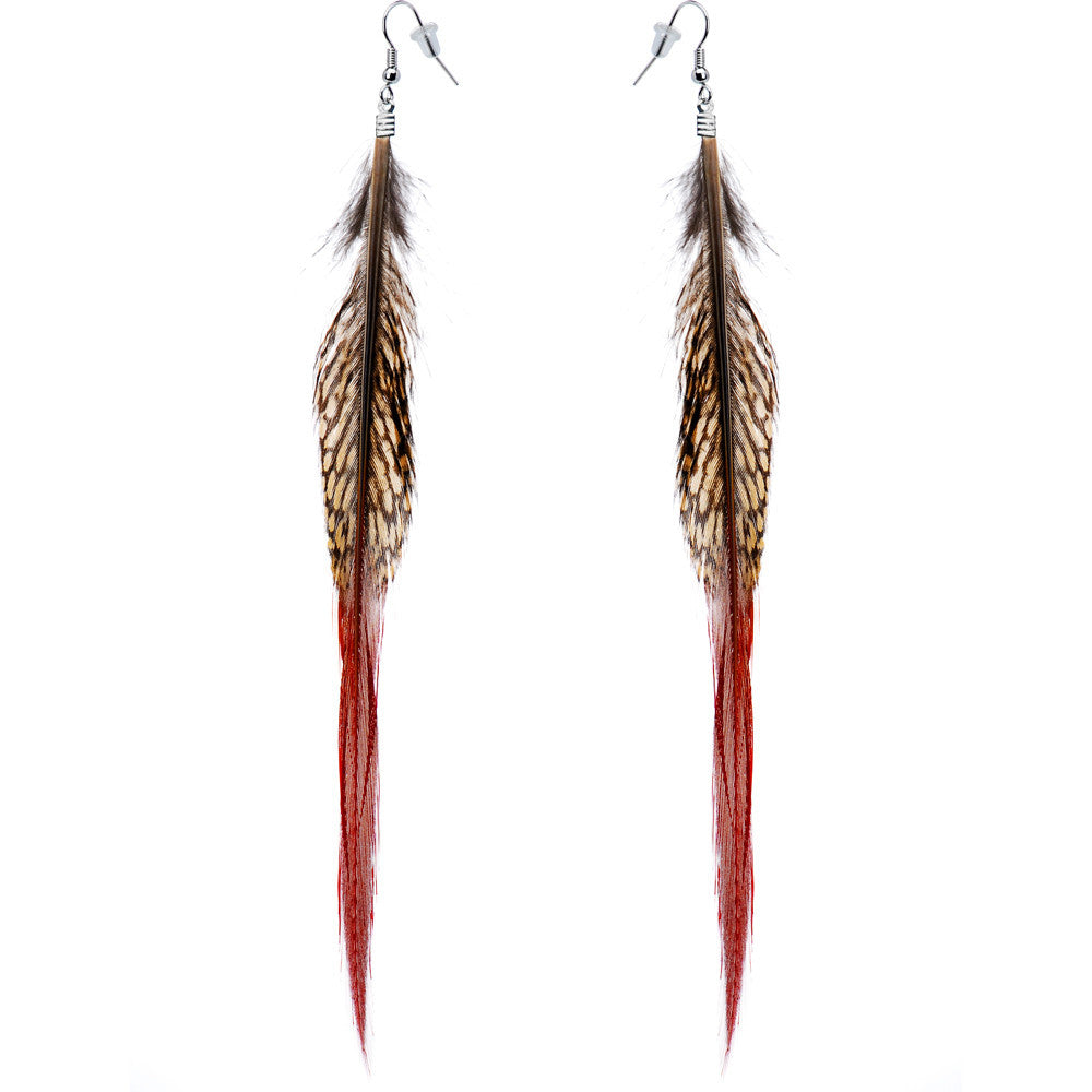 Naturally beautiful looking long feather earrings. Chic feather drop earrings designed with fishhook backings.