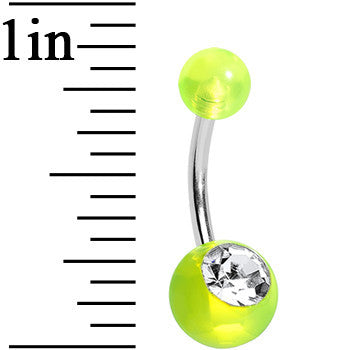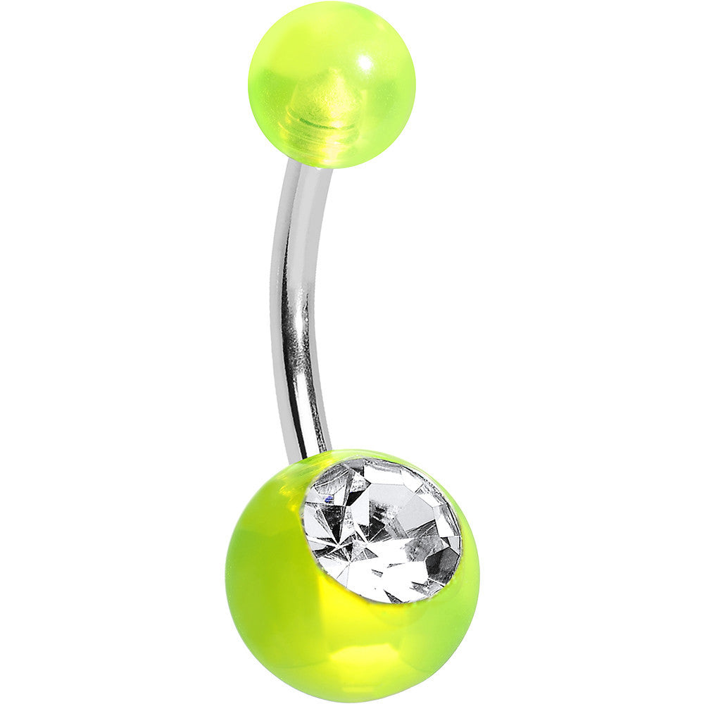 Sparkle meets radiant color with this neon belly button ring. A clear gem is housed in bright green acrylic to create a navel ring that will be a standout in your pierced body jewelry collection.