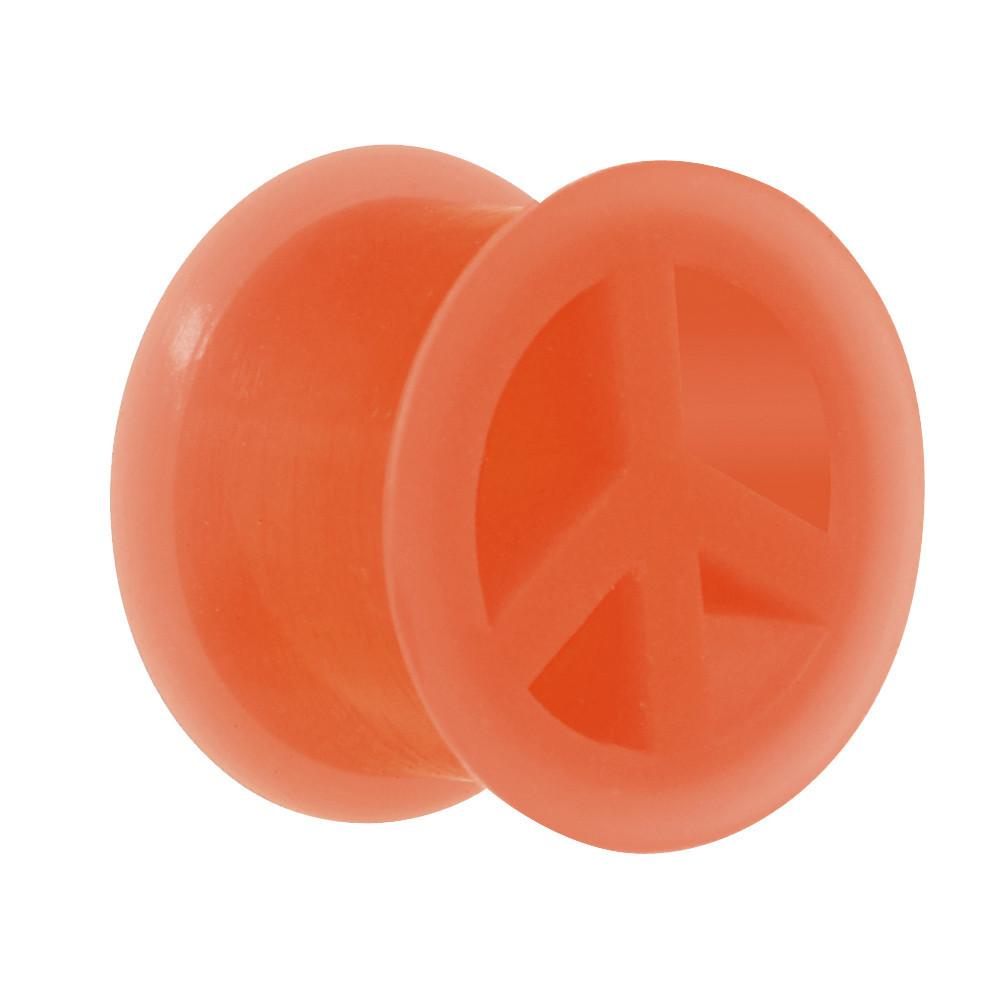 Sold individually, purchase two for a pair. Tunnel ear plug with peace symbol. Neon silicone peace sign plug. Keep the peace with this symbol ear expander plug. Flexible and comfortable silicone plug Body Jewelry.