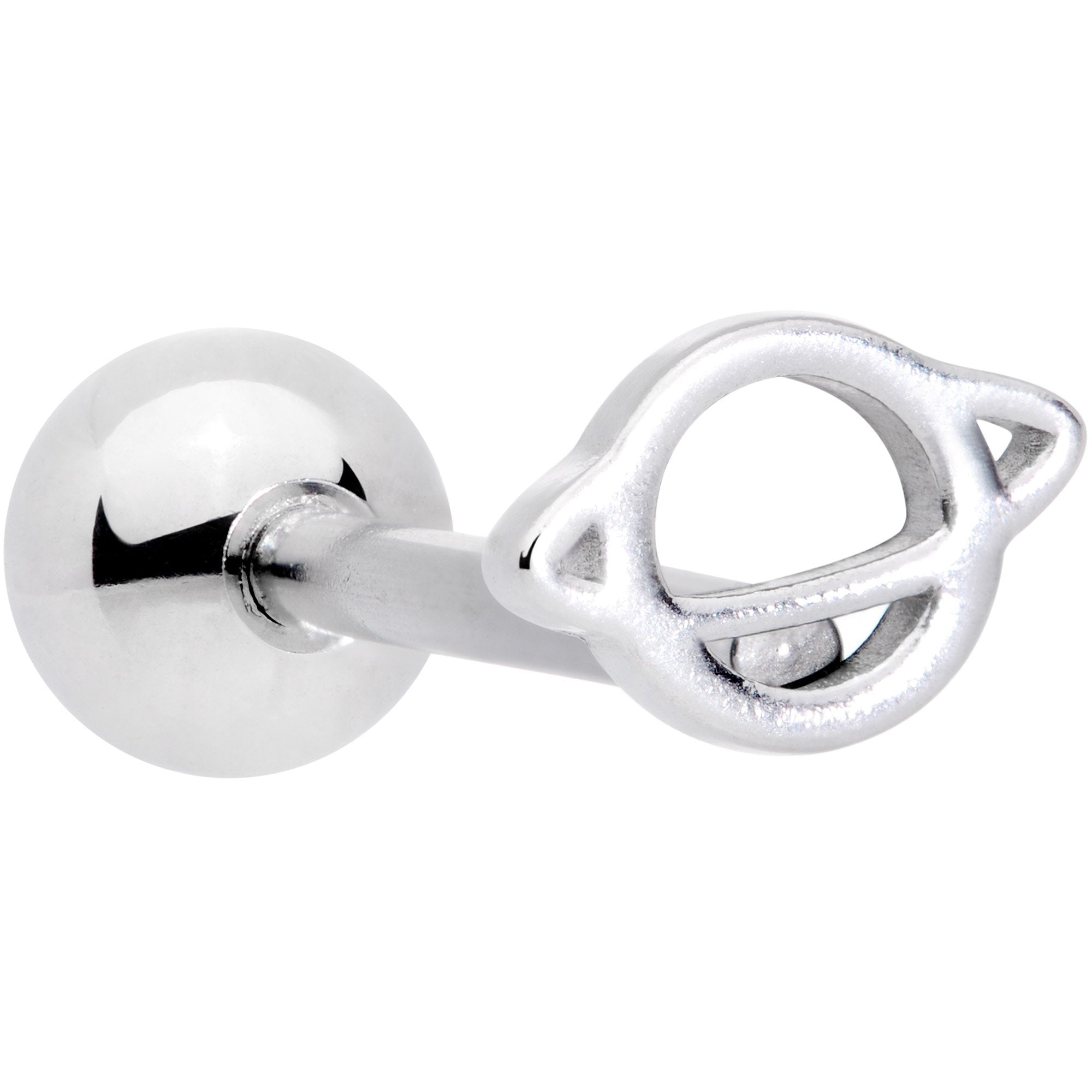 Whether you feel a bit spaced out or out of this world, this 14 gauge tongue ring will fully express it for you! It's made with a 5/8" durable 316L surgical grade stainless steel straight barbell and has a 6mm bottom ball end. The top features an openwork planet Saturn, unmistakable with its iconic rings going around it. This tongue ring is bound to keep your head and heart among the stars, even while you have a planet in your mouth!