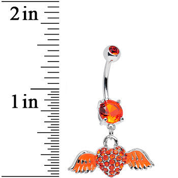 Orange Gem Paved Heart Neon Wings Dangle Belly Ring