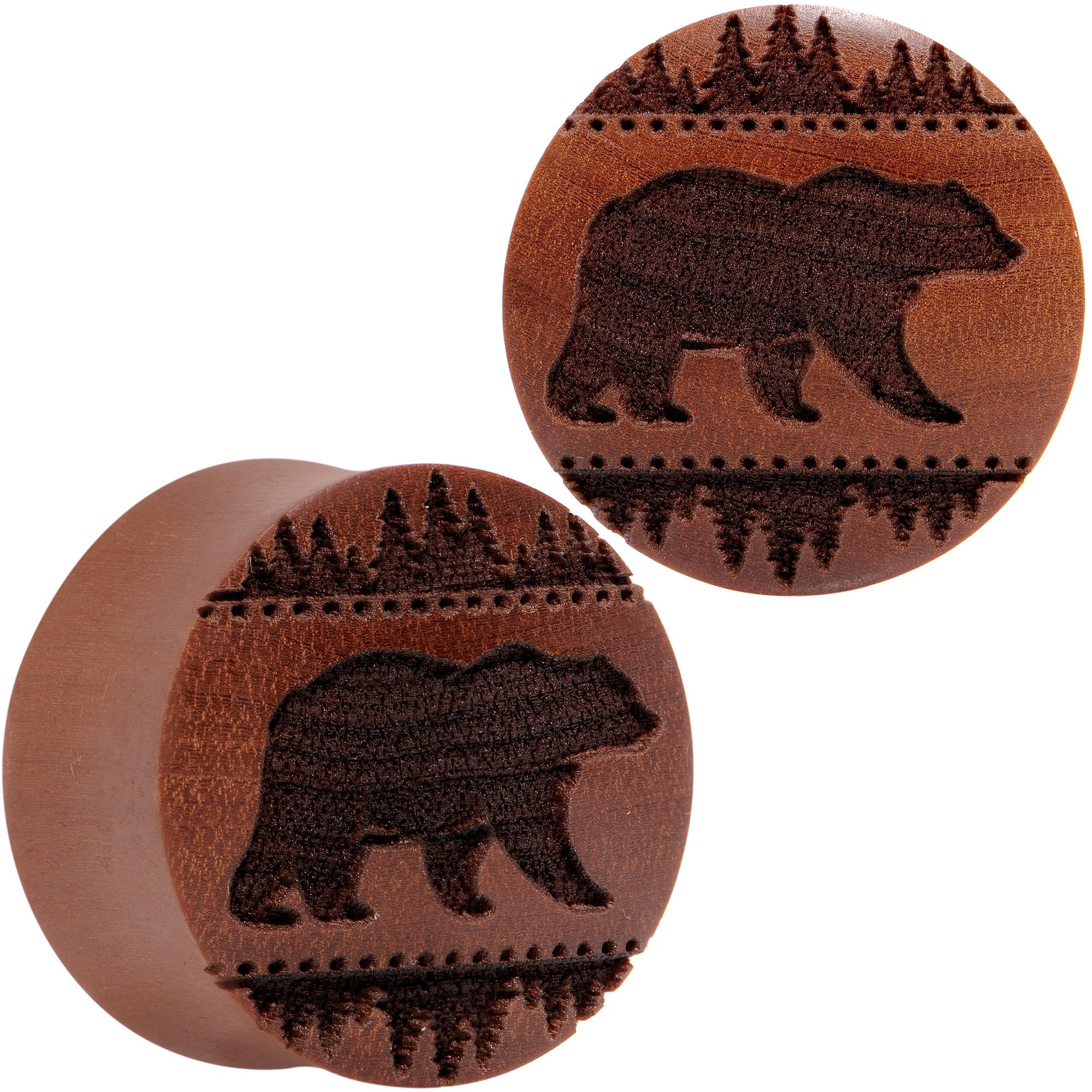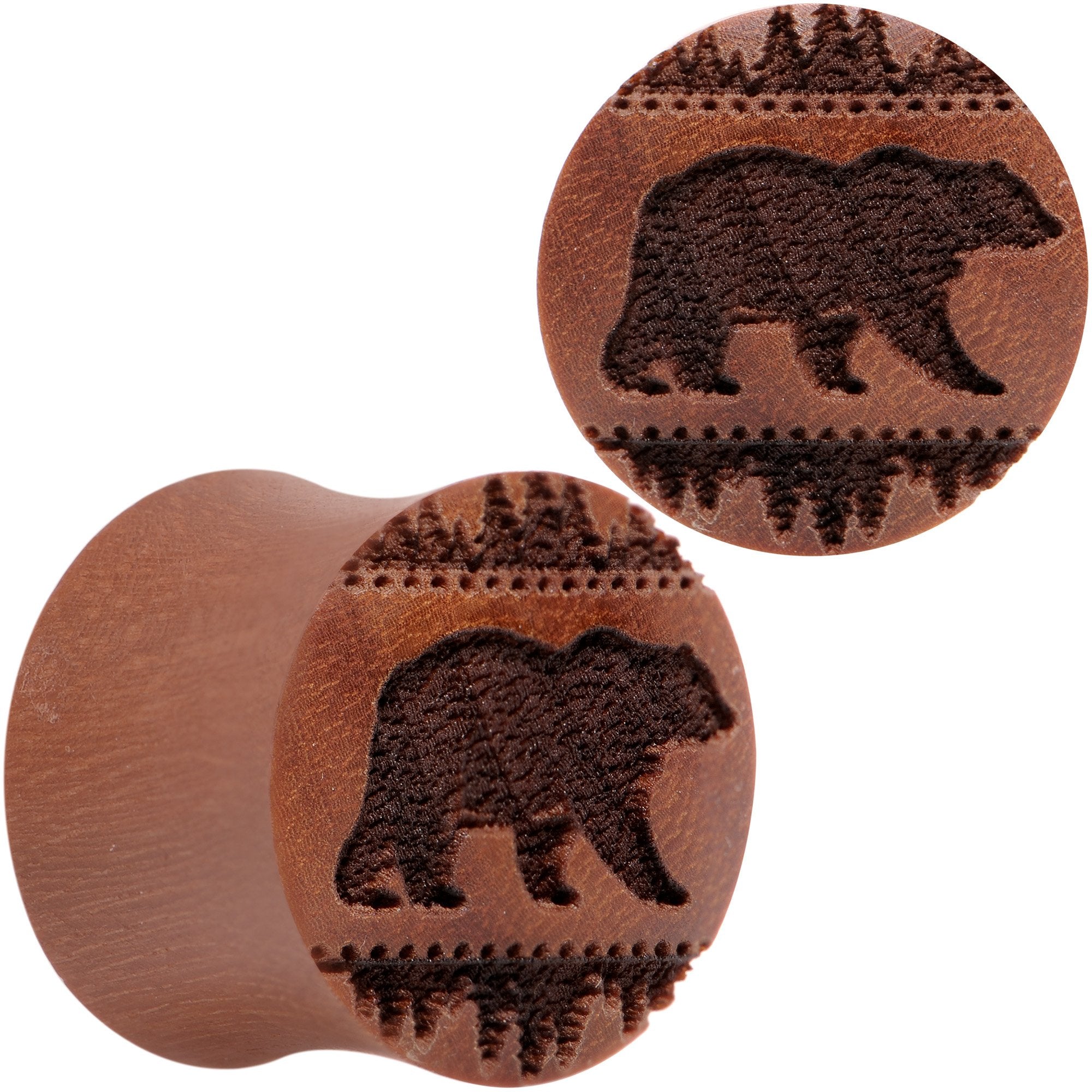 Organic Sawo Wood Holiday Bear in the Woods Saddle Plug Set Sizes 8mm to 25mm