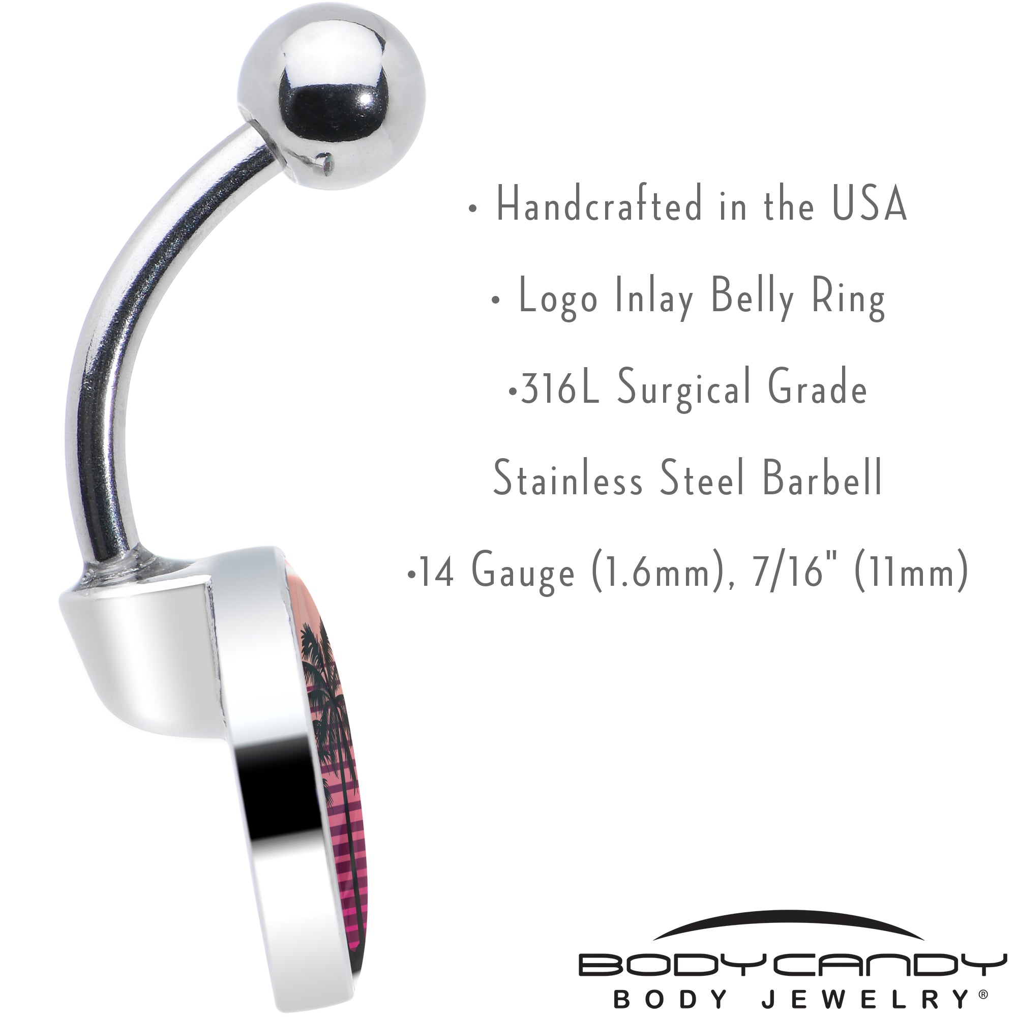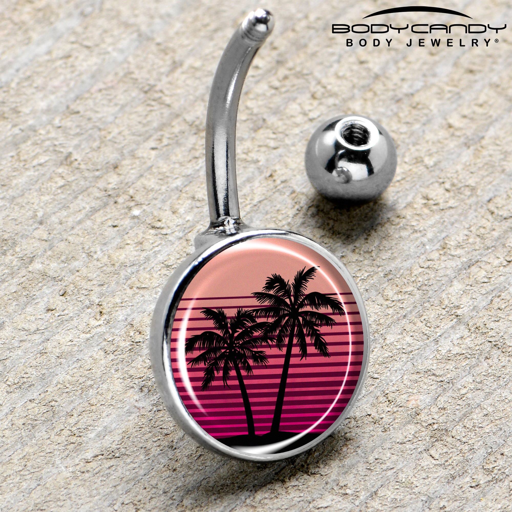 Hypoallergenic belly ring for sensitive skinPalm Tree Retro Sunset Belly Ring