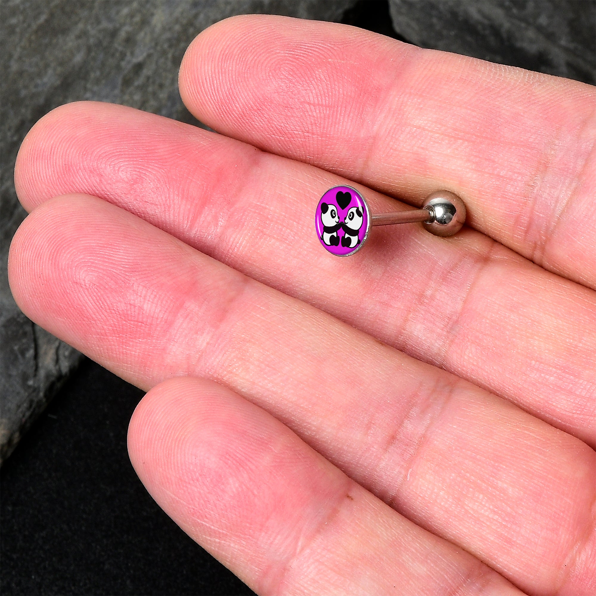 Hypoallergenic jewelry for sensitive skin.Panda Love Barbell Tongue Ring