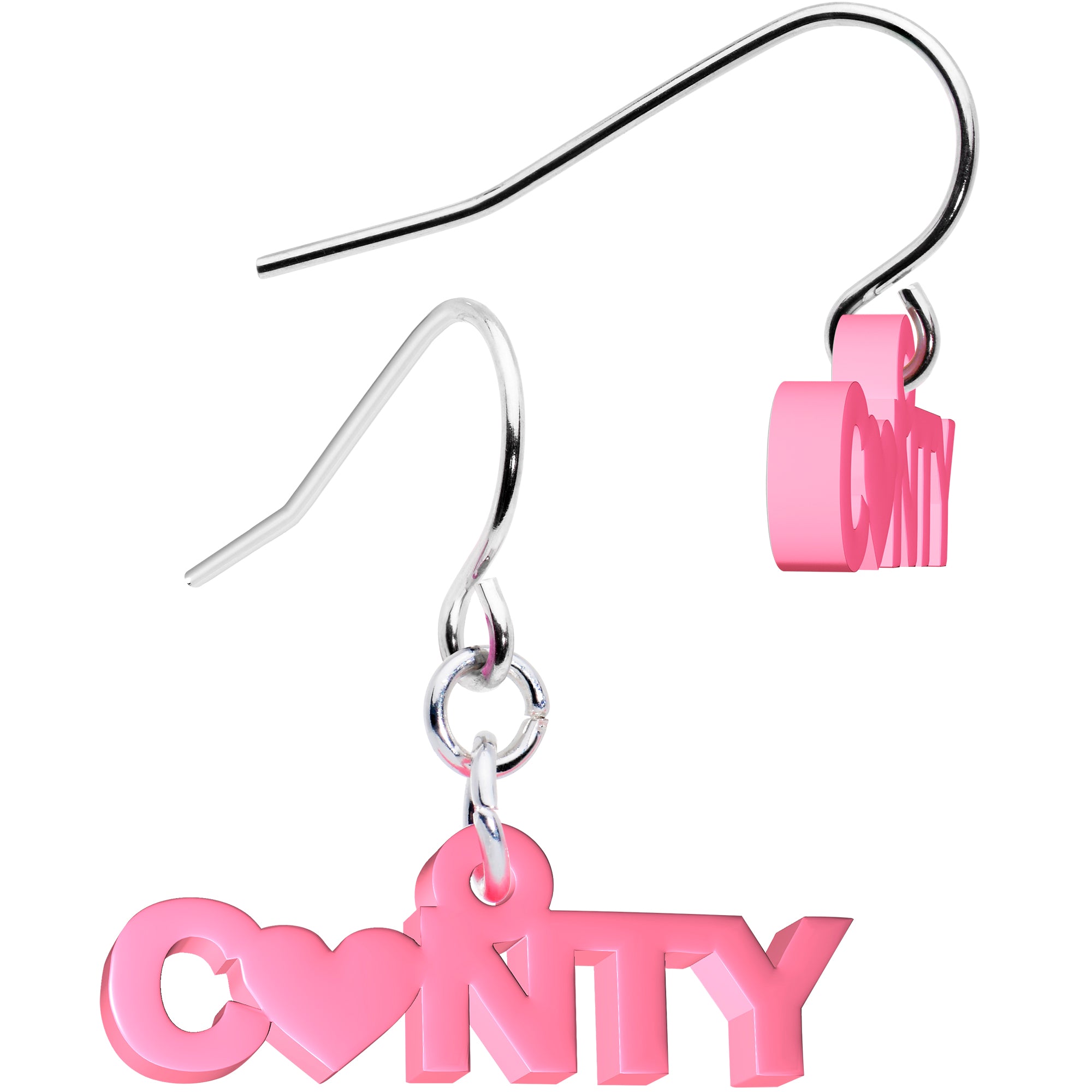 Say what you mean and mean what you say with these Cunty Earrings featuring an acrylic word charm with a heart. These dangle heart word earrings are perfect and comfortable to wear with their fishooks and lightweight design.