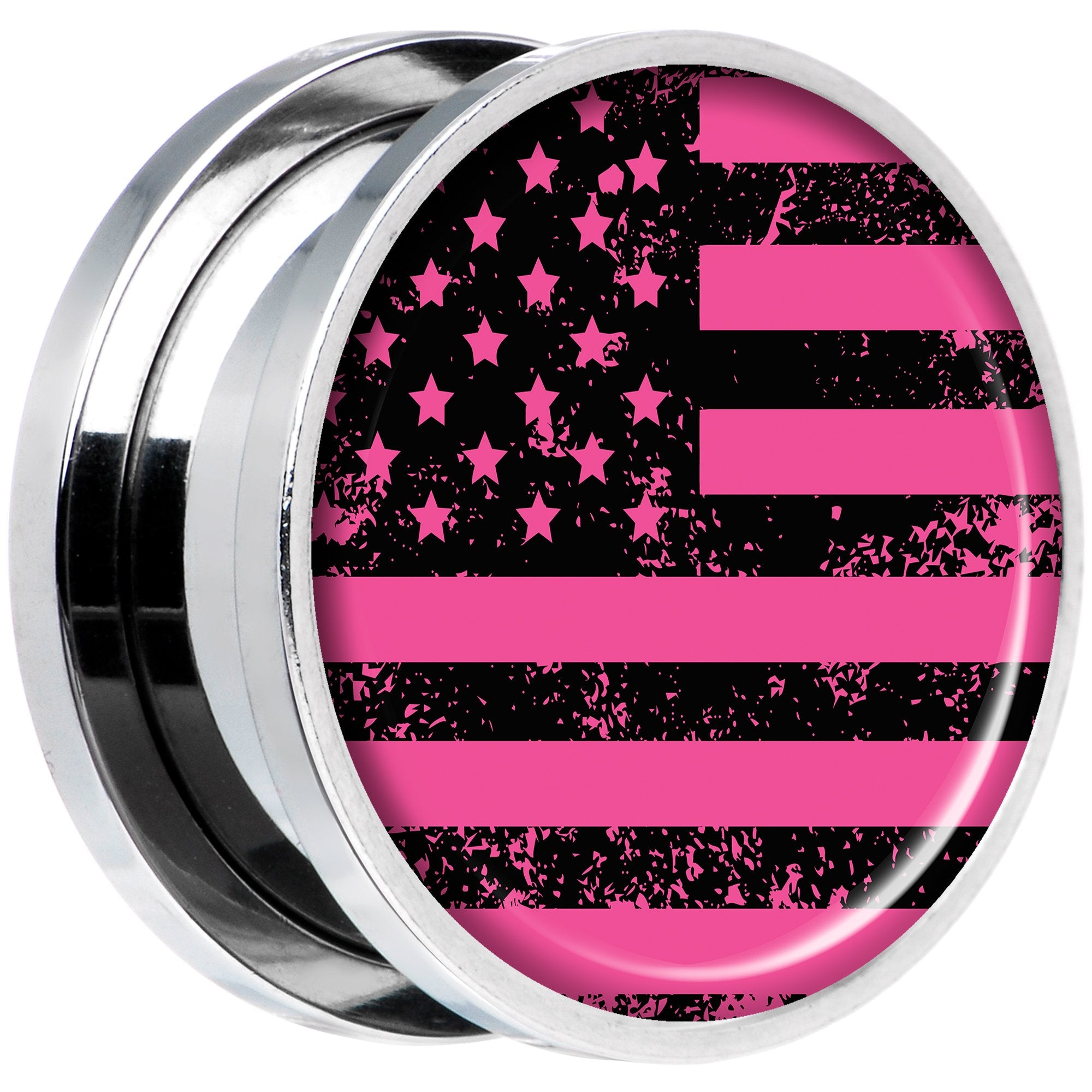 If you love the color pink and American flags then this pair of double flare plugs is right for you! Made with durable 316L surgical grade stainless steel, these 11/16" ear gauges are made with a screw fit design for easier insertion and removal and are sold as a set of two for you.