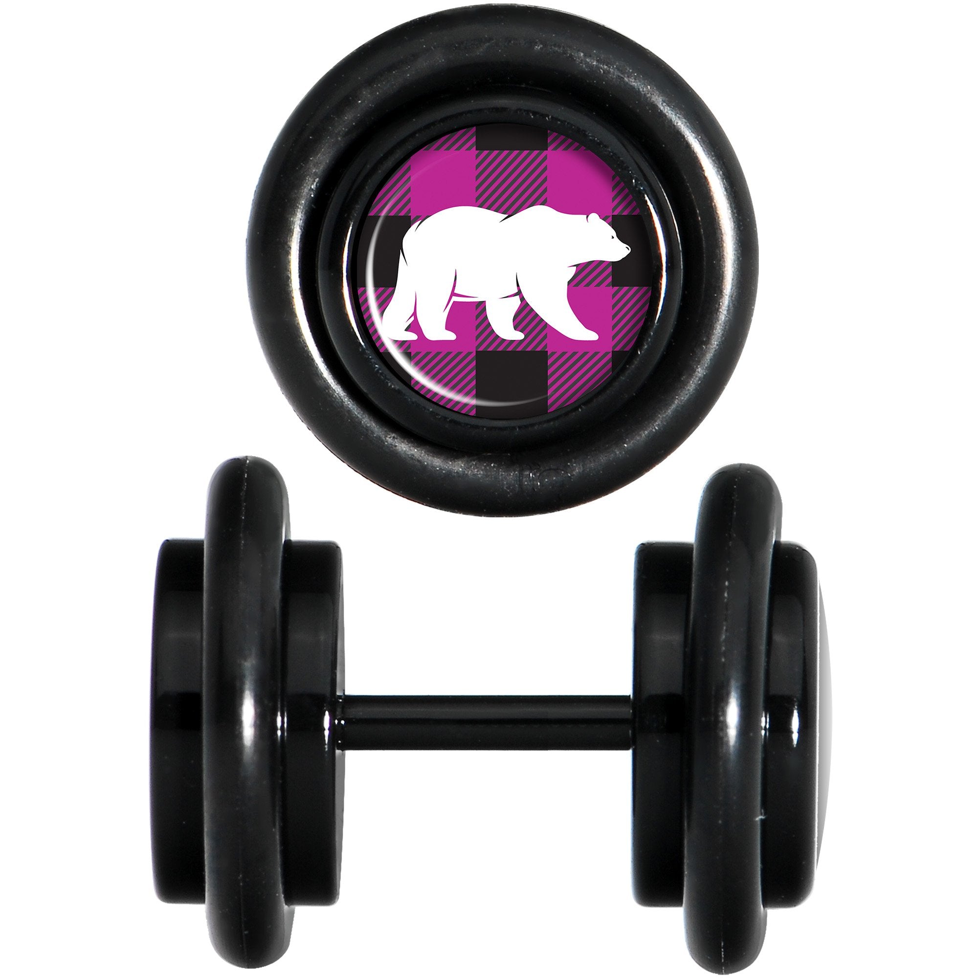 Pink Black Plaid Polar Bear Black Cheater Plug Set