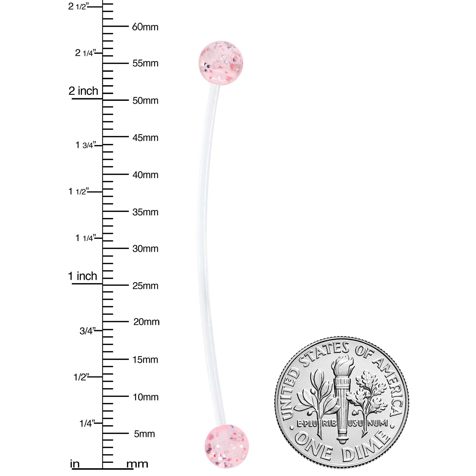 14 Gauge (1.6mm), 2" (51mm), Flexible Bioplast Straight Barbell, 6mm Acrylic Ball Ends, Sold With set of 4 Ball Ends