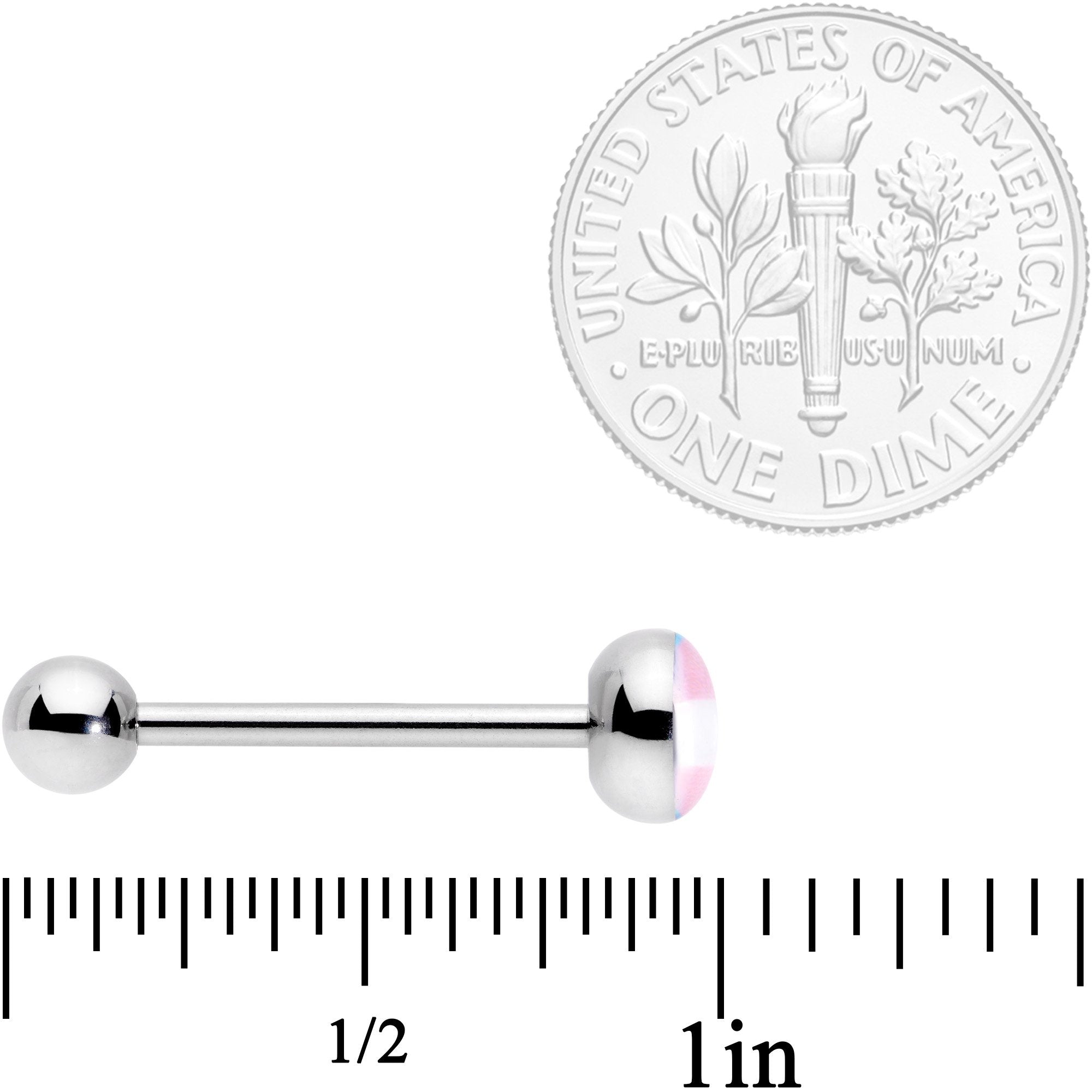 Show off your belief in transgender rights when you wear this 14 gauge tongue piercing. Made with a 5/8" durable 316L surgical grade stainless straight barbell, this tongue jewelry features a transgender pride flag top inlay in pink, white, and blue so you can show your support for all people no matter how they identify.