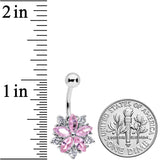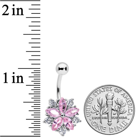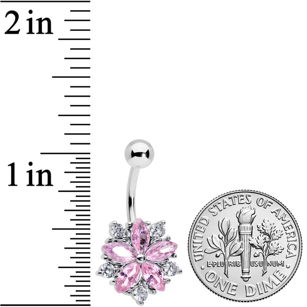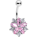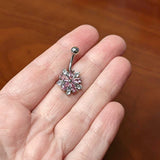 Pink Clear CZ Gem Baroque Floral Burst Belly Ring
