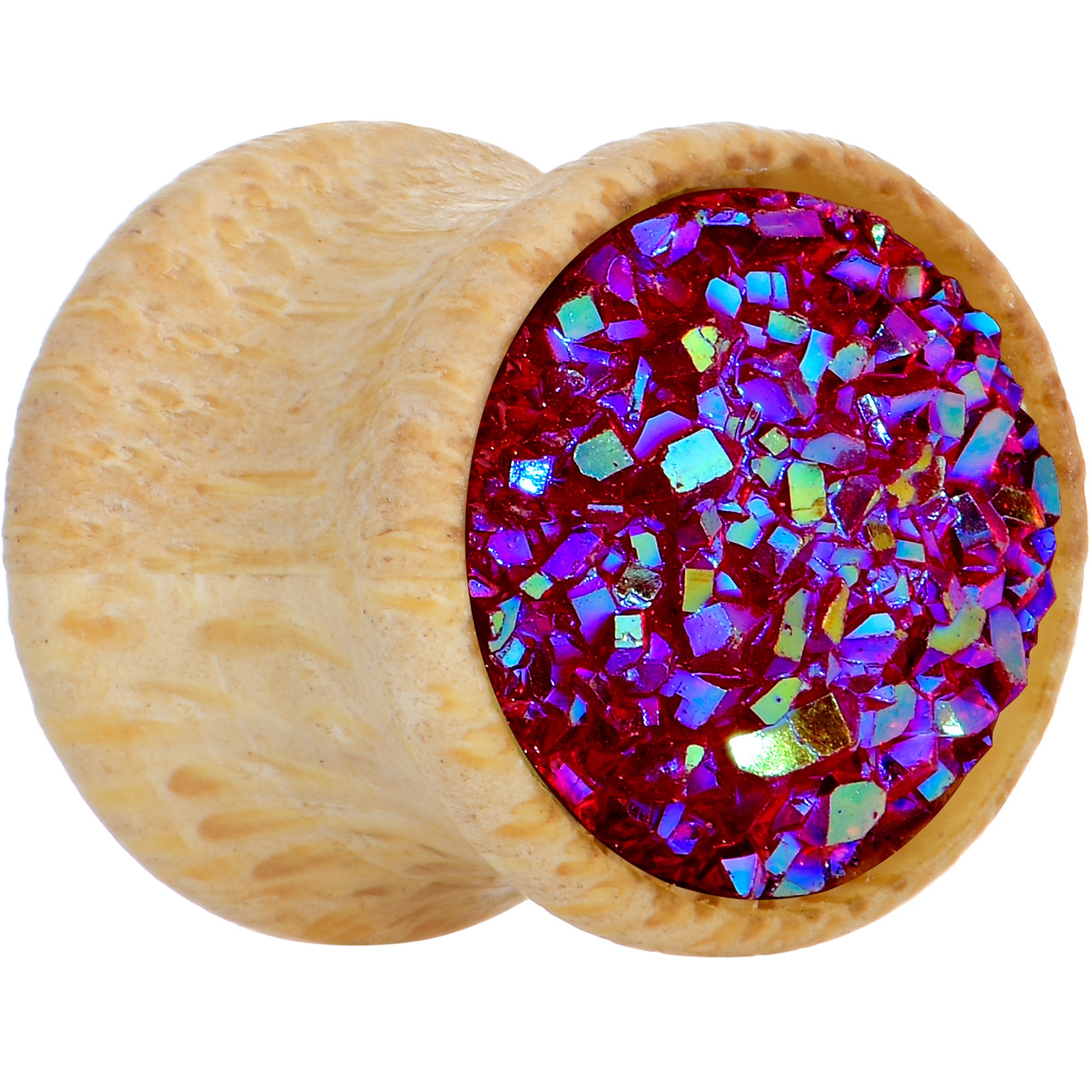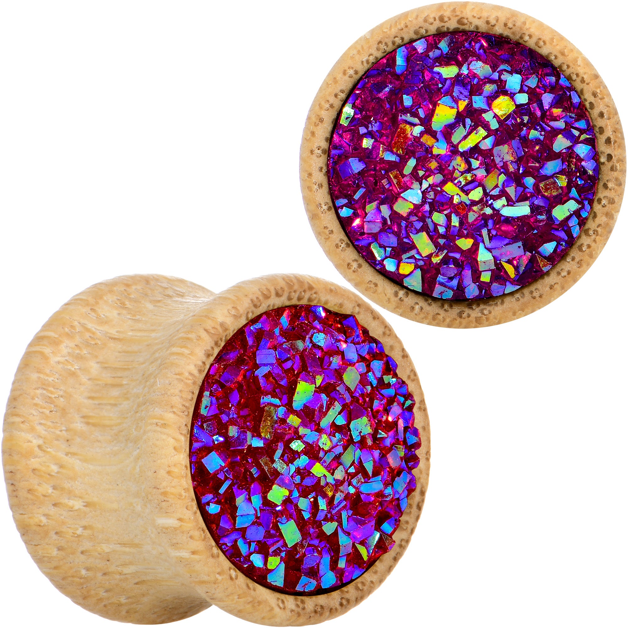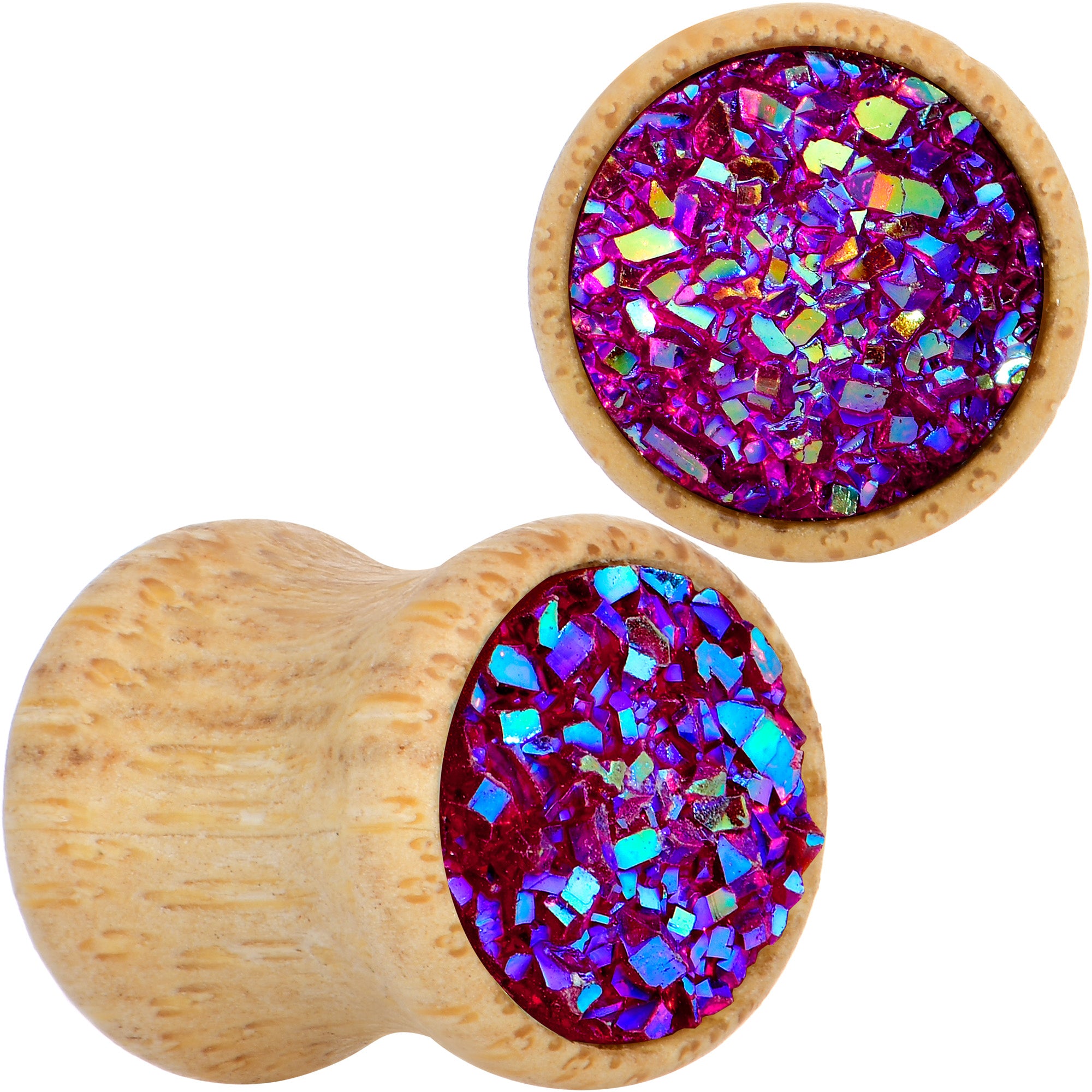 Pink Druzy Stone Wood Saddle Plug Set