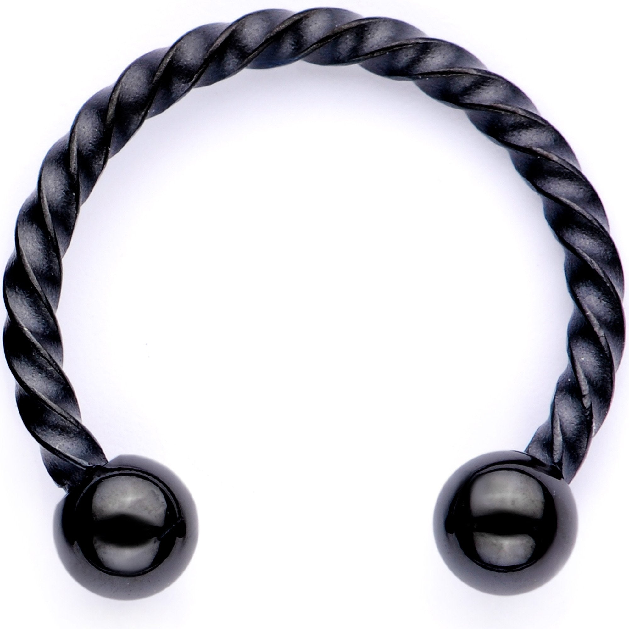 16 Gauge (1.2mm), 3/8" (10mm), Black Anodized over 316L Surgical Grade Stainless Steel Seamless Clip On Ring, Black Anodized over 316L Surgical Grade Stainless Steel Horseshoe Circular Barbell, Black Anodized over Twisted 316L Surgical Grade Stainless Steel Horseshoe Circular Barbell, Faux Opal, No Piercing Required, Sold as a Set of 3