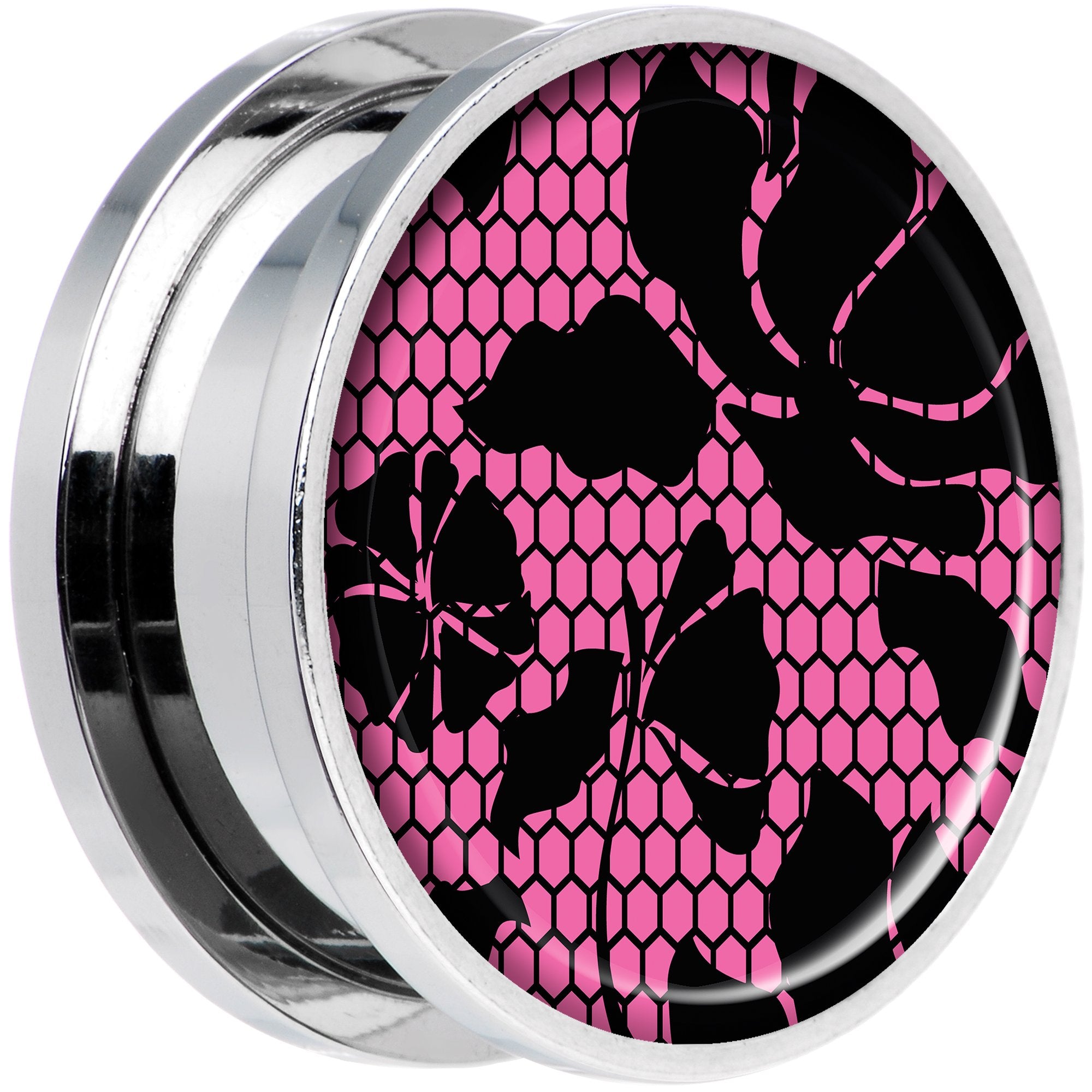 Pink Floral Lace Steel Screw Fit Plug Set 20mm