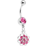 Pink Gem Blossoming Flower Dangle Belly Ring