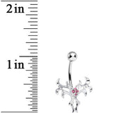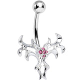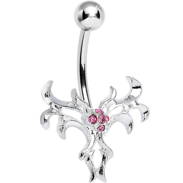 The fascinating silver tone leaves of this belly button ring look like they're from a gorgeous, out-of-this-world plant. Centered with a cluster of pink gems, the navel ring has just enough sparkle to draw in admirers for a closer look.