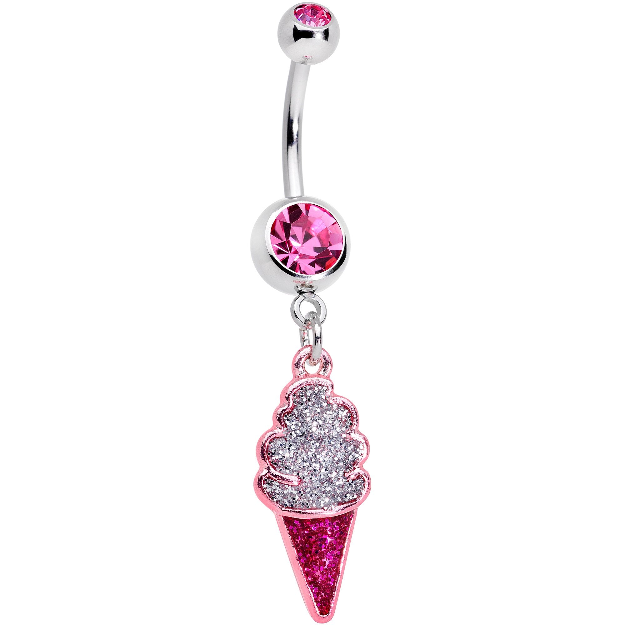 Pink Gem Glitter Sprinkles Ice Cream Cone Dangle Belly Ring
