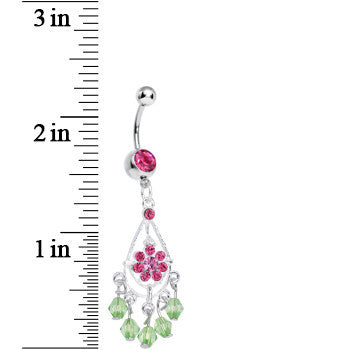 Pink Gem Green Crystal Drops Pink Flower Chandelier Belly Ring