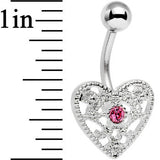 Let your light shine through when you wear this lovely lattice navel piercing. Made with a 7/16" surgical grade stainless steel curved barbell, this belly button ring features a latticework heart bottom charm set with a single, central pink gem. Whether you are dressing up for the love of your life or just looking for something pretty this Valentine's Day inspired navel jewelry is perfect for you!