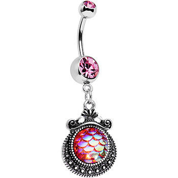 Pink Gem Iridescent Purple Mermaid Scales Dangle Belly Ring