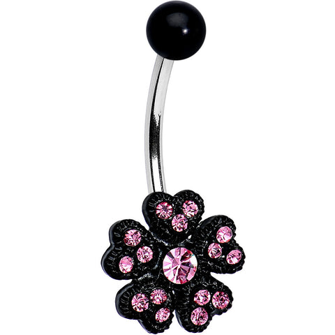 Pink Gem Midnight Black Five Petal Flower Belly Ring