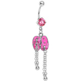 When you feel like summer but the temps say otherwise, bring a little bit of the beach indoors year 'round. This super cute navel ring features sandals in pink with a pink gem and smaller clear gems, along with cool swinging chains.