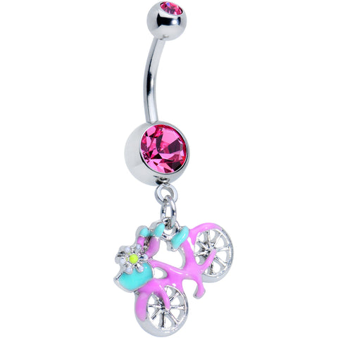 Pink Gem Pop A Wheelie Bike Dangle Belly Ring