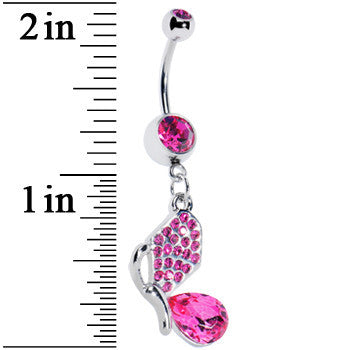 Butterflies are a source of hope and inspiration and this butterfly navel ring is no exception. This radiant pink butterfly is fashion on a double gem curved barbell.