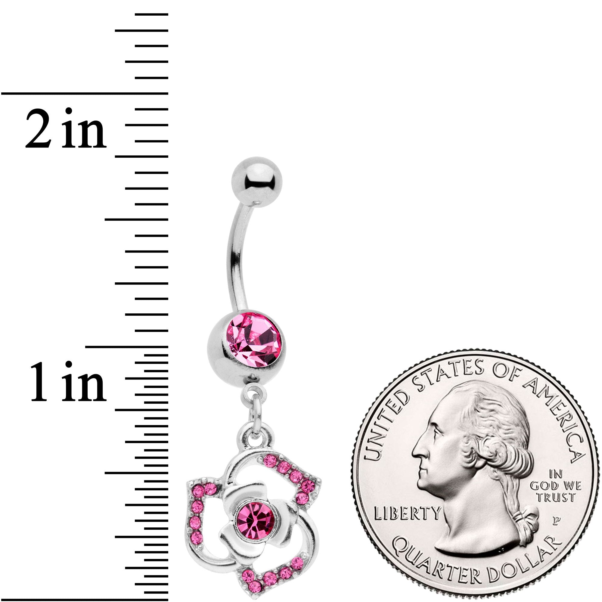 A rose by any other name wouldn't be half as lovely as this 14 gauge navel ring! 7/16" in length, this gorgeous belly button ring is made with a durable 316L surgical grade stainless steel curved barbell and accented with pink gems on the flower dangle and bottom ball to make it truly eye-catching. This is one flower you're going to want in your garden forever!